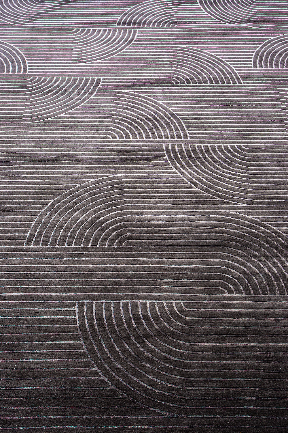 Крупные рисунки в виде линий и фигур на фактурной поверхности ковра превращаются в выразительные композиции. Они акцентируют на себе внимание и добавляют динамики в современный интерьер. Комбинации разных фигур и повторяющийся орнамент задают ритмическую основу пространству, привносят в него оригинальные оптические иллюзии.
