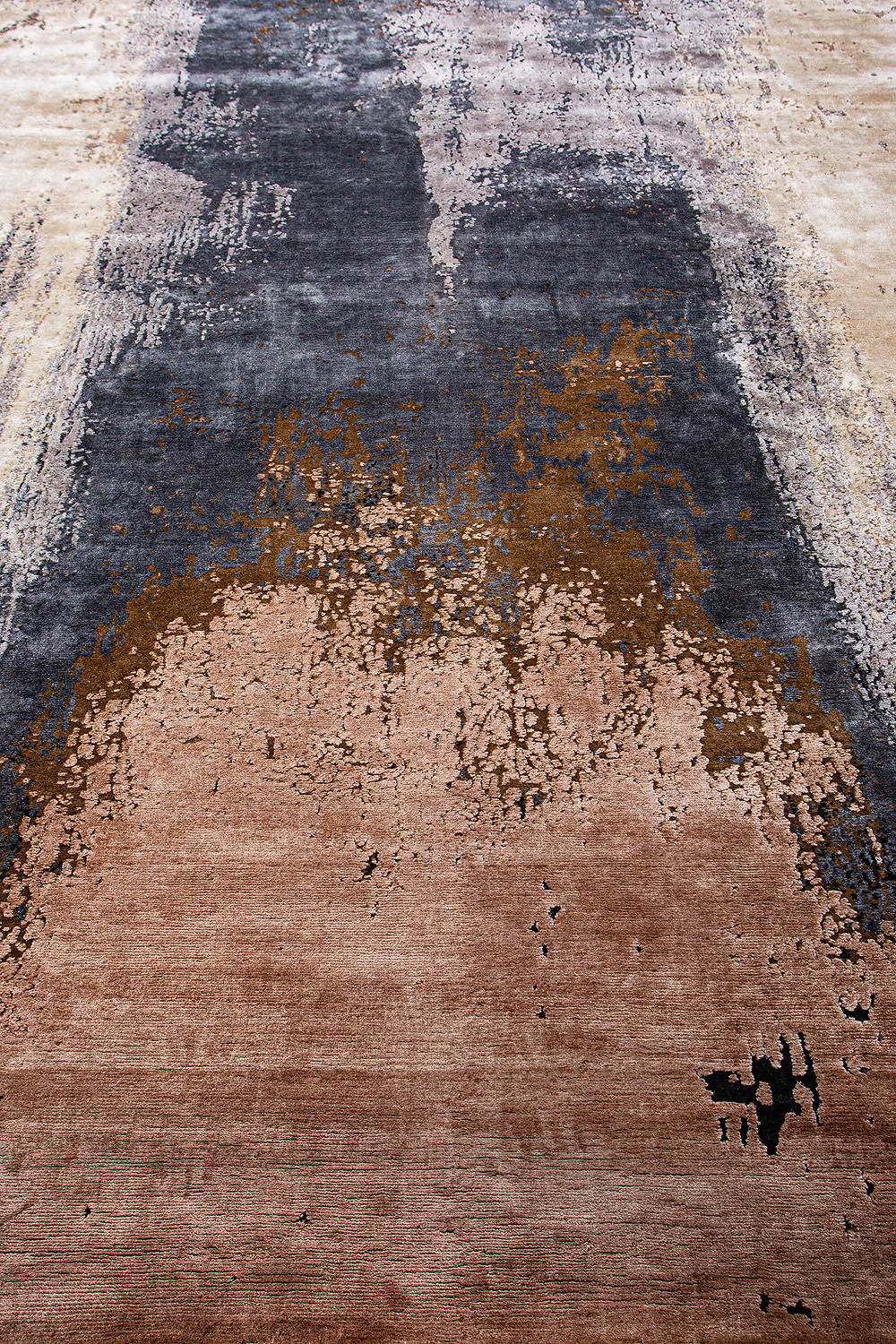 Дизайн ковров напоминает современные полотна художников-абстракционистов и производит столь же яркое и незабываемое впечатление в интерьере. Живописный эффект и необычная фактура зависят от выбора материала: натуральной шерсти, шёлка и от их сочетаний друг с другом. Ковры ткутся вручную в лучших мастерских Индии и Пакистана.