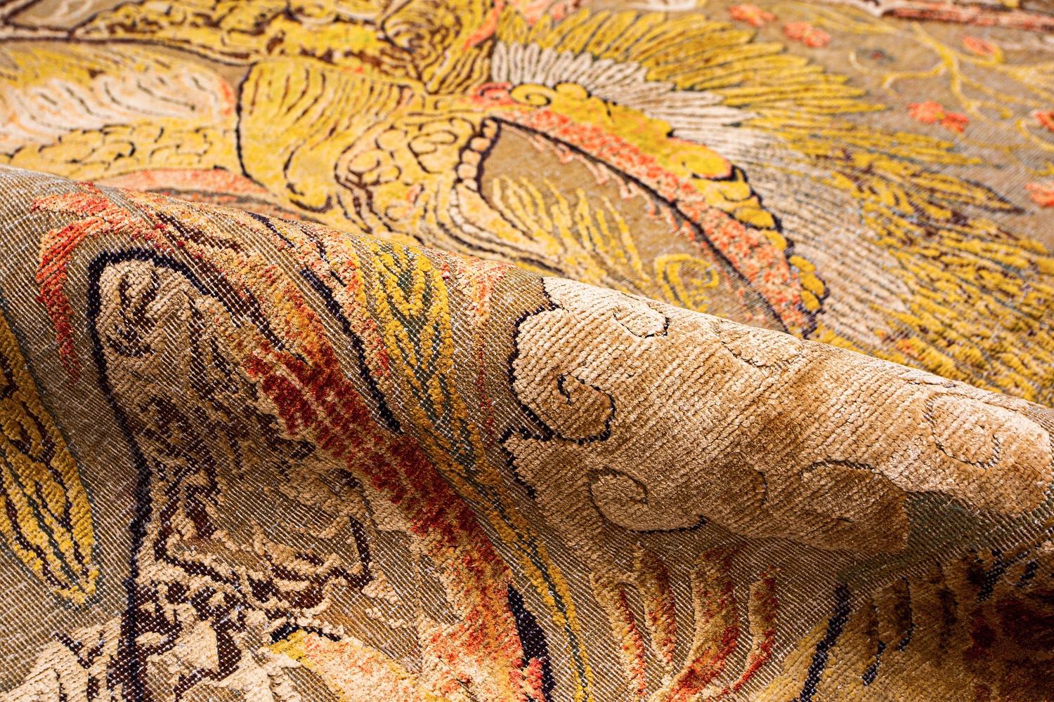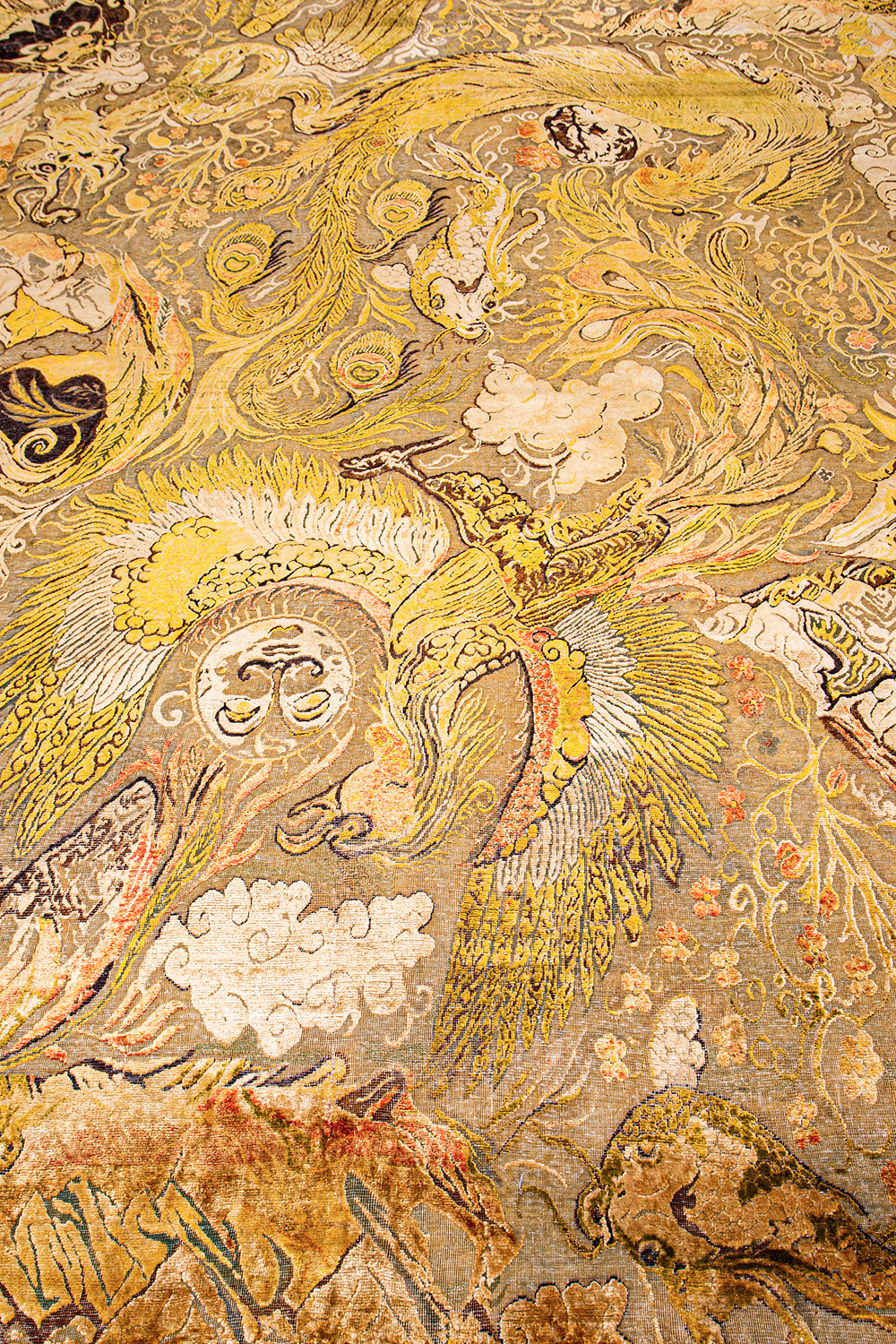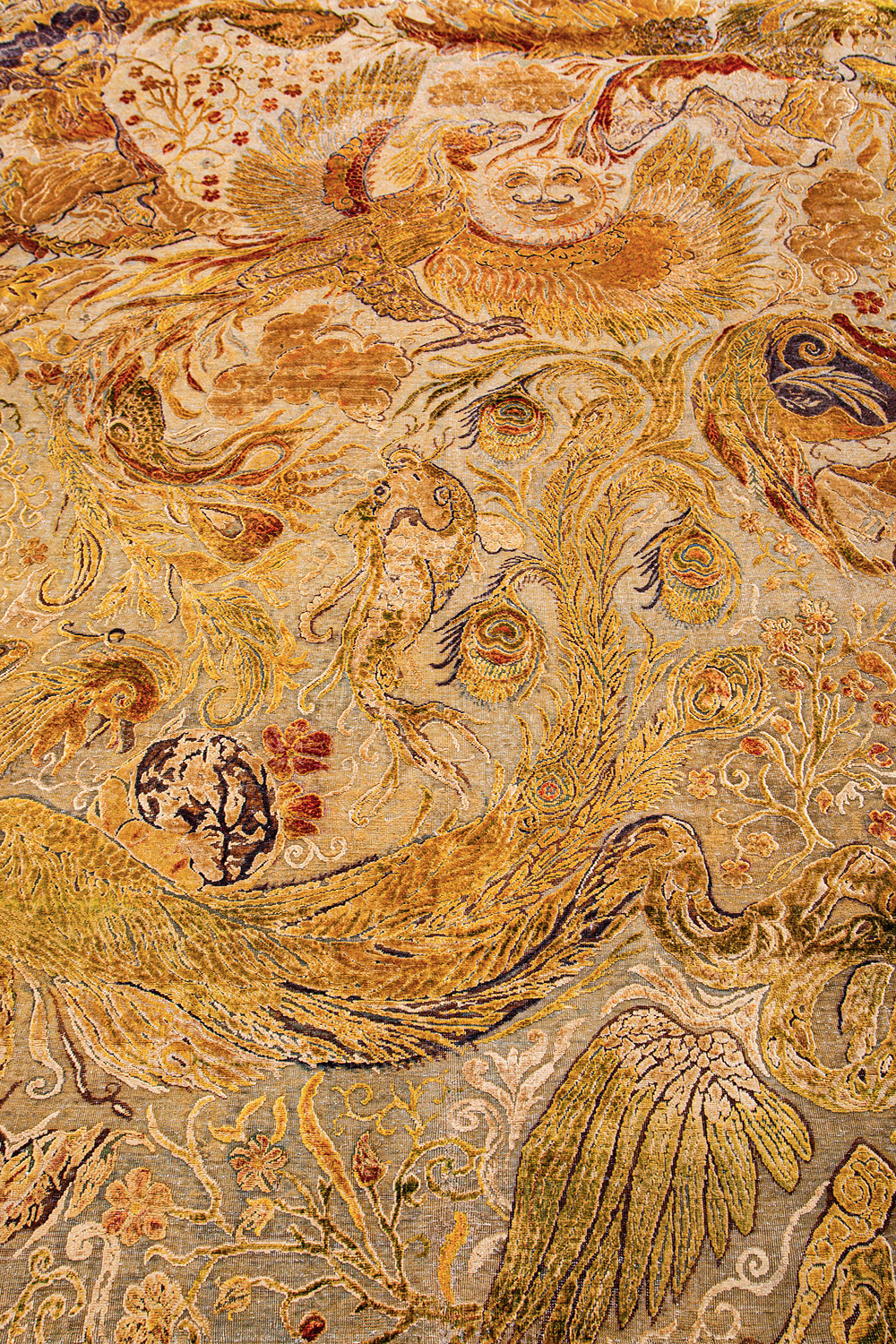 Родина этих ковров Индия и Пакистан. Чтобы создать такое произведение искусства у мастеров уходит от одного года до двух лет. Плотность ковров, в зависимости от размера, составляет от 150 000 до 400 000 узлов на квадратный метр.