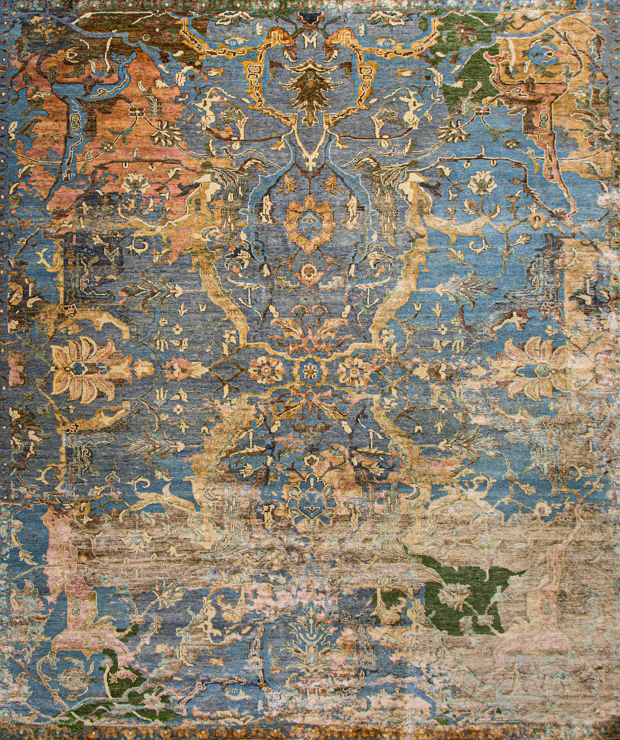 Родина этих ковров Индия и Пакистан. Чтобы создать такое произведение искусства у мастеров уходит от одного года до двух лет. Плотность ковров, в зависимости от размера, составляет от 150 000 до 400 000 узлов на квадратный метр.