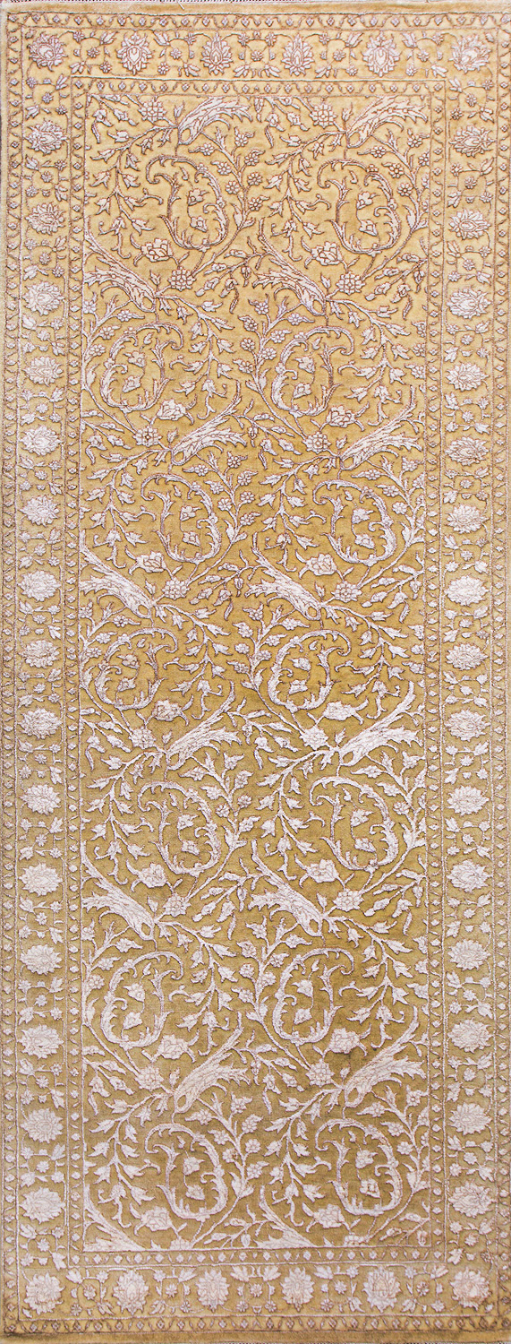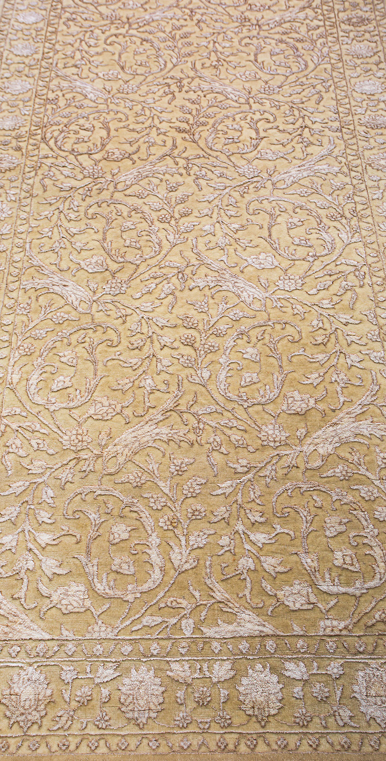 Более пяти веков назад в городе Агра зародилась знаменитая индийская школа ковроткачества, прославившаяся не меньше, чем расположенный здесь же Тадж-Махал. Мощное персидское влияние, помноженное на местный колорит, привело к появлению оригинальных орнаментов с богатыми растительными узорами — причудливым цветам, ветвям и листьям, разбросанным по всему полю ковра.