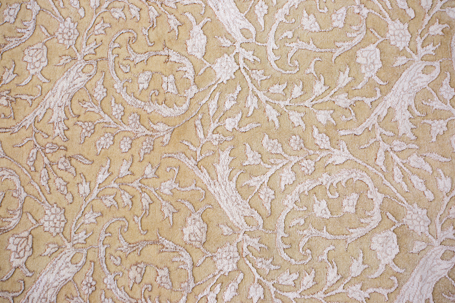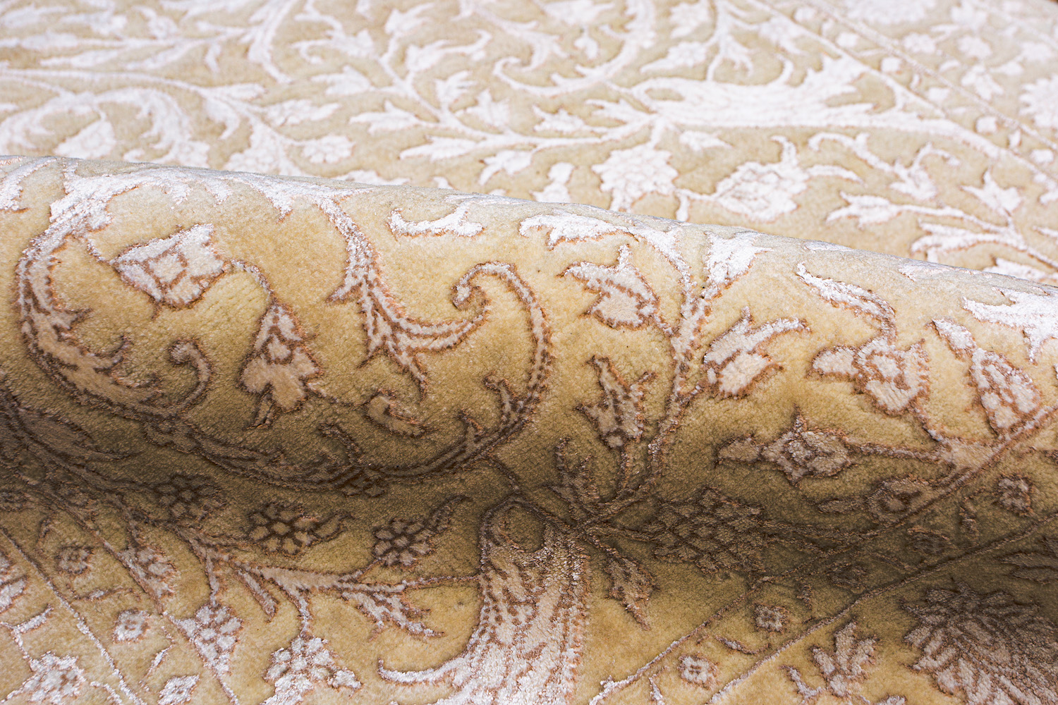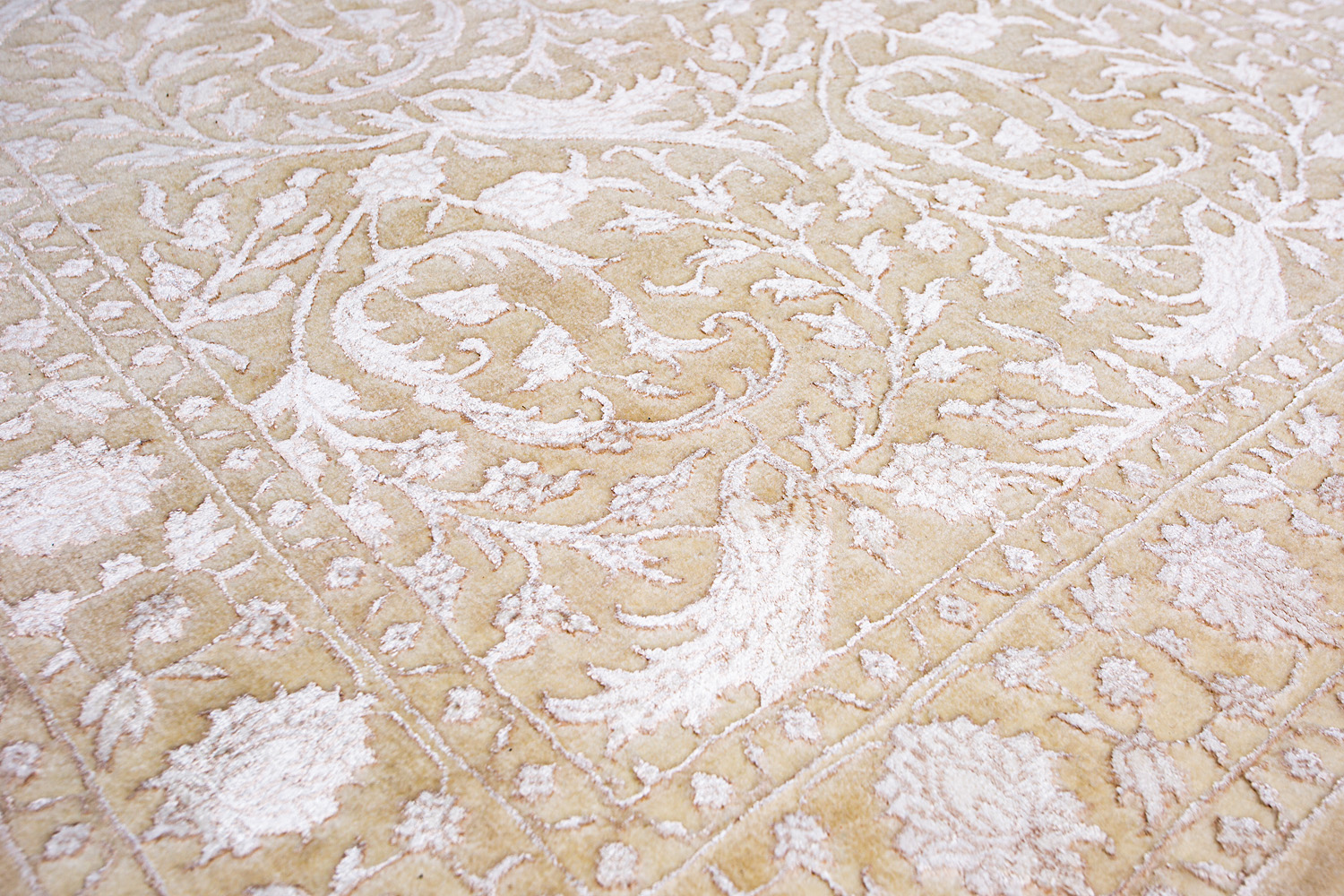 Каждый ковер в этой коллекции соткан вручную из шерсти и арт шёлка опытными индийскими мастерами.