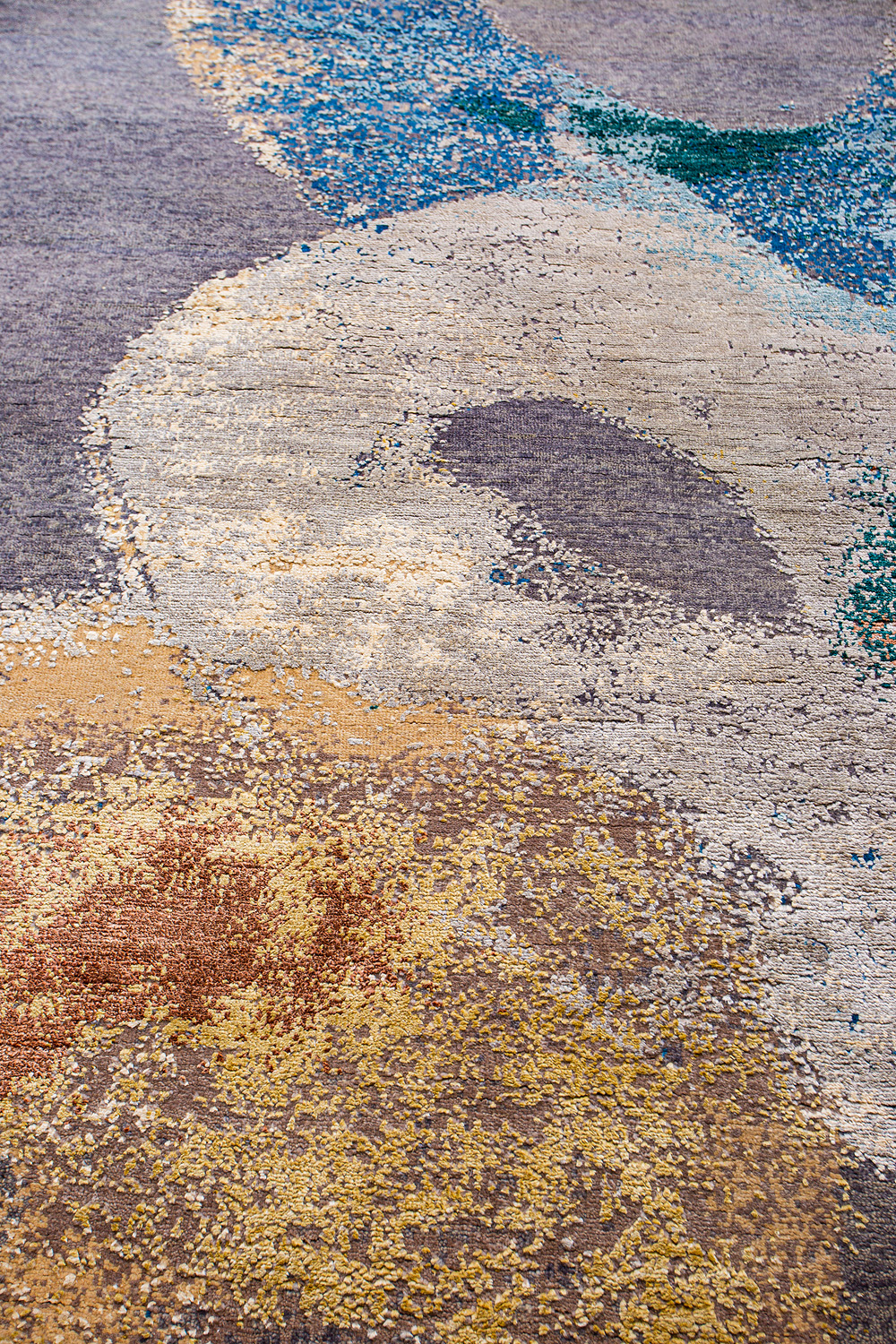 Дизайн ковров напоминает современные полотна художников-абстракционистов и производит столь же яркое и незабываемое впечатление в интерьере. Живописный эффект и необычная фактура зависят от выбора материала: натуральной шерсти, шёлка и от их сочетаний друг с другом. Ковры ткутся вручную в лучших мастерских Индии и Пакистана.