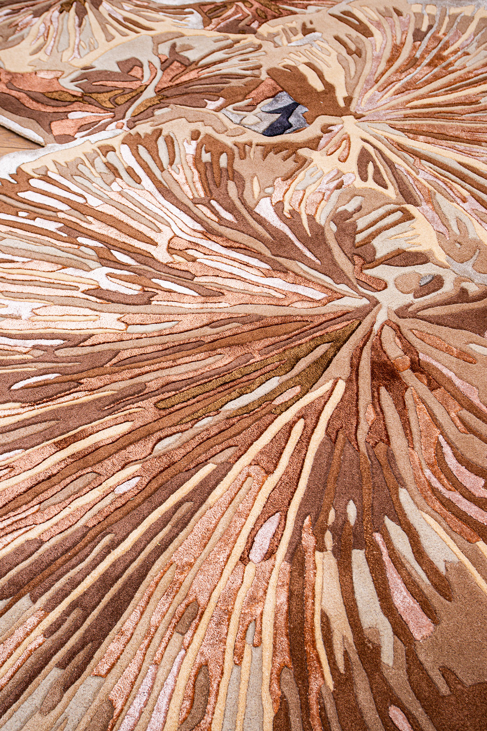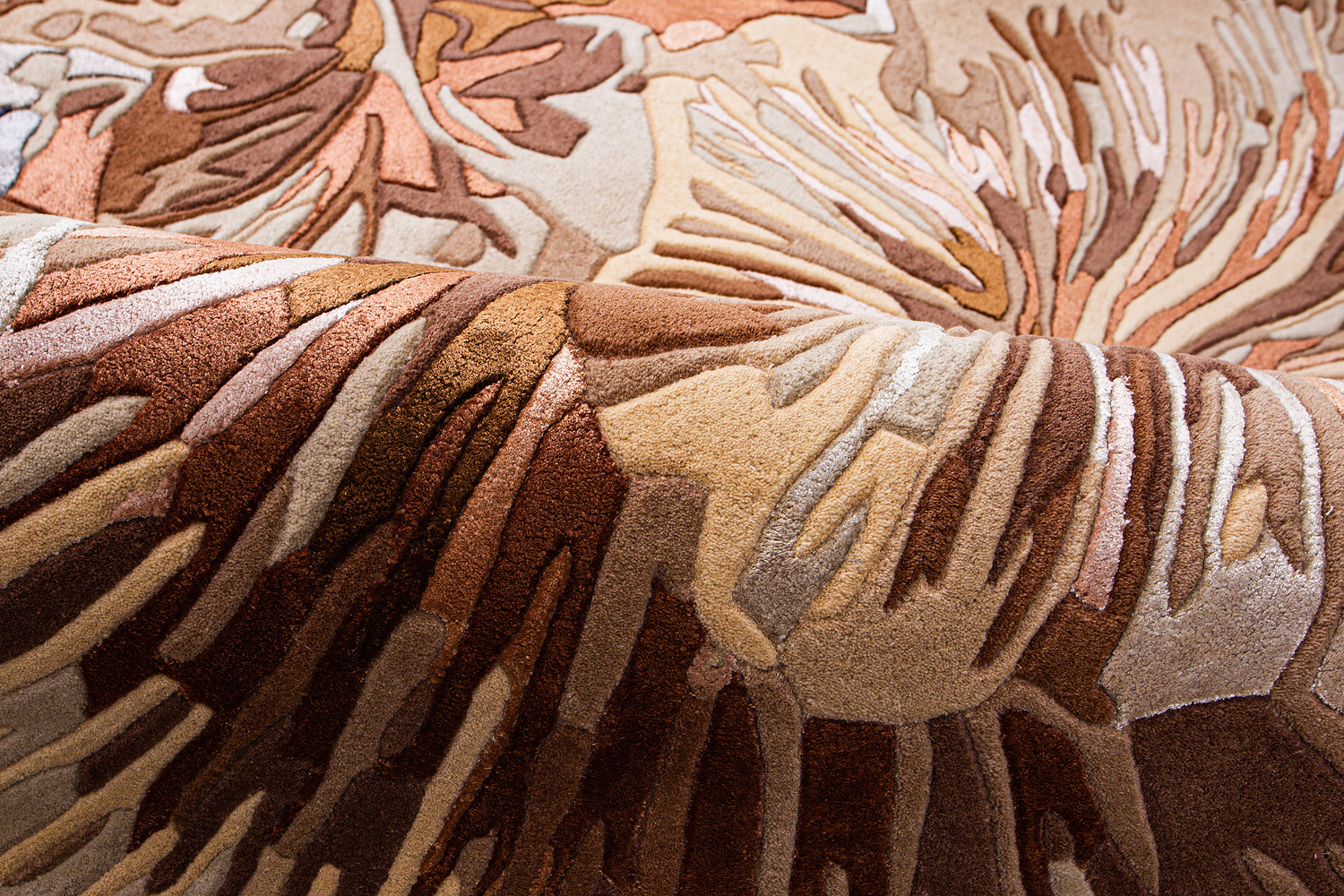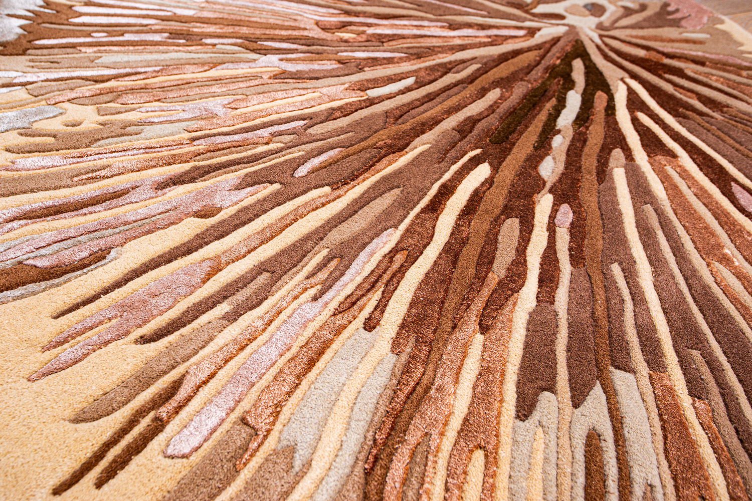 Ковры изготовлены методом ручного тафтинга. Эта технология позволяет создавать объемный рисунок и мягкие переходы цвета. Почитатели коллекции Shine ценят богатую фактуру ковров в сочетании с натуральными материалами и превосходной техникой в исполнении индийских мастеров.