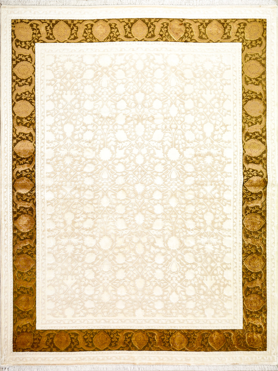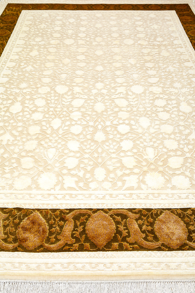 Более пяти веков назад в городе Агра зародилась знаменитая индийская школа ковроткачества, прославившаяся не меньше, чем расположенный здесь же Тадж-Махал. Мощное персидское влияние, помноженное на местный колорит, привело к появлению оригинальных орнаментов с богатыми растительными узорами — причудливым цветам, ветвям и листьям, разбросанным по всему полю ковра.