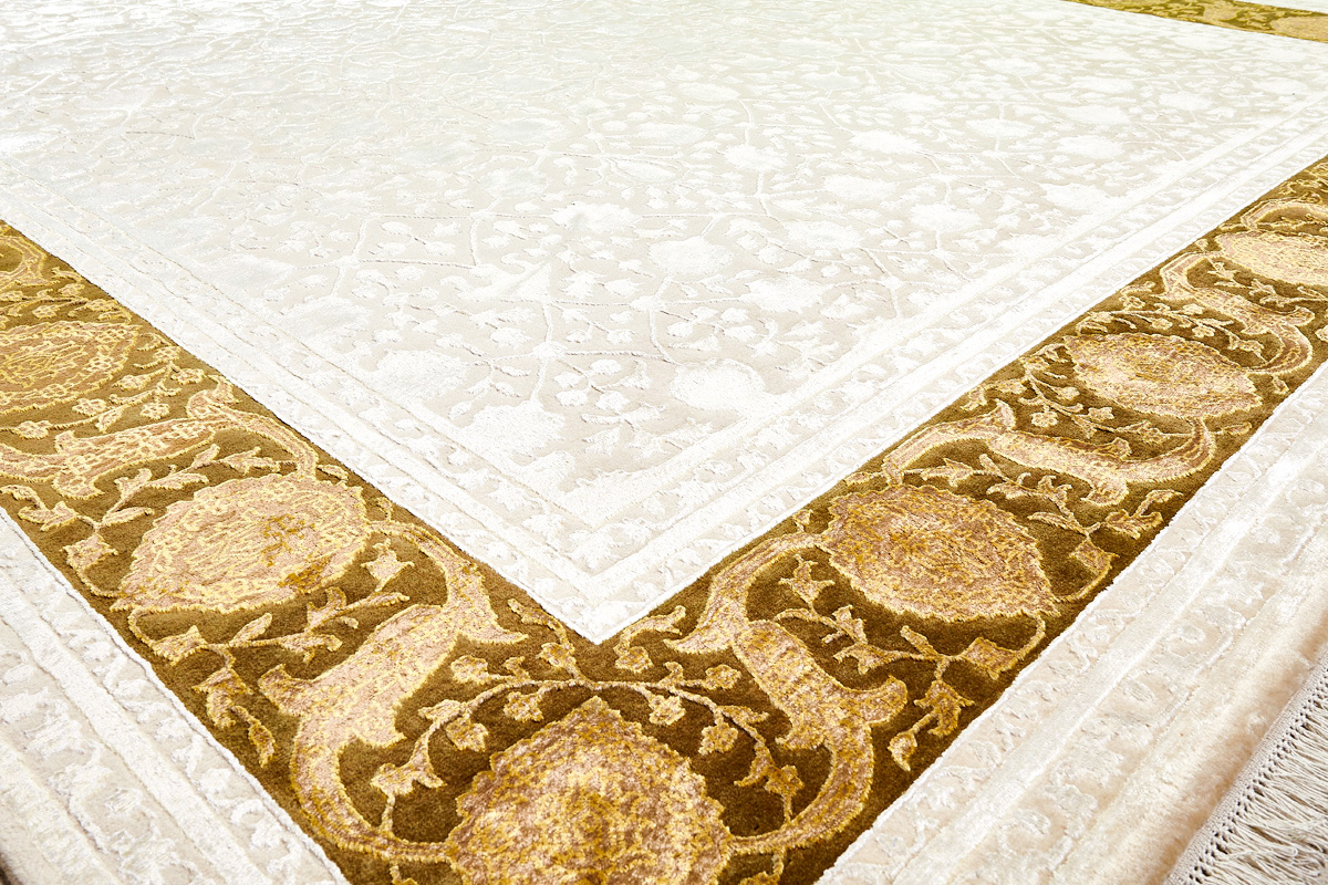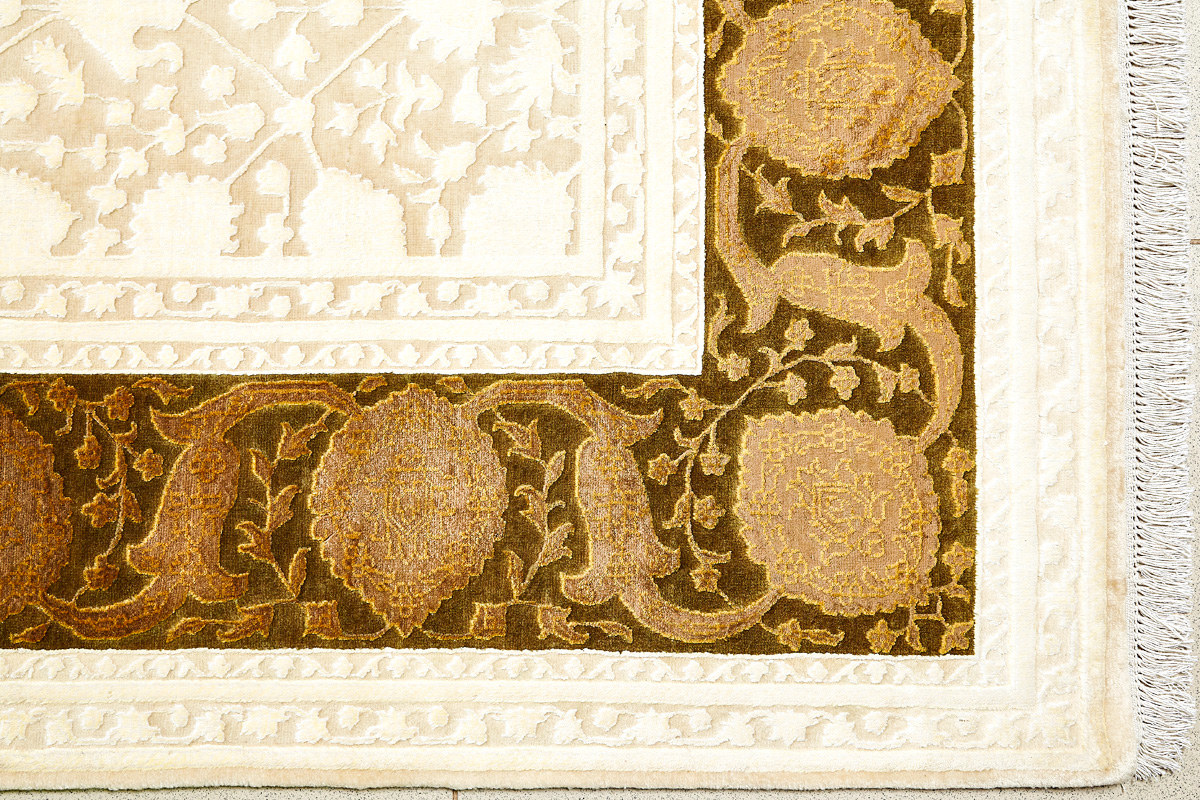 Каждый ковер в этой коллекции соткан вручную из шерсти и арт шёлка опытными индийскими мастерами.