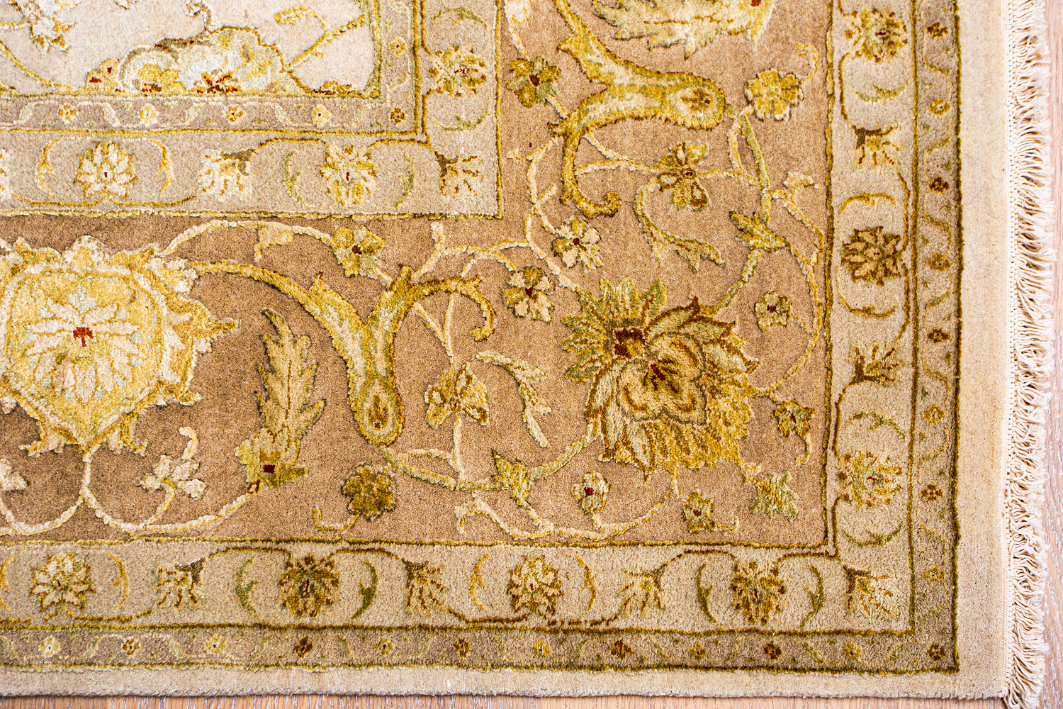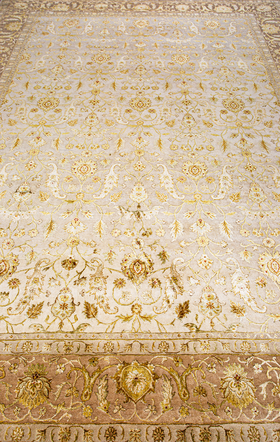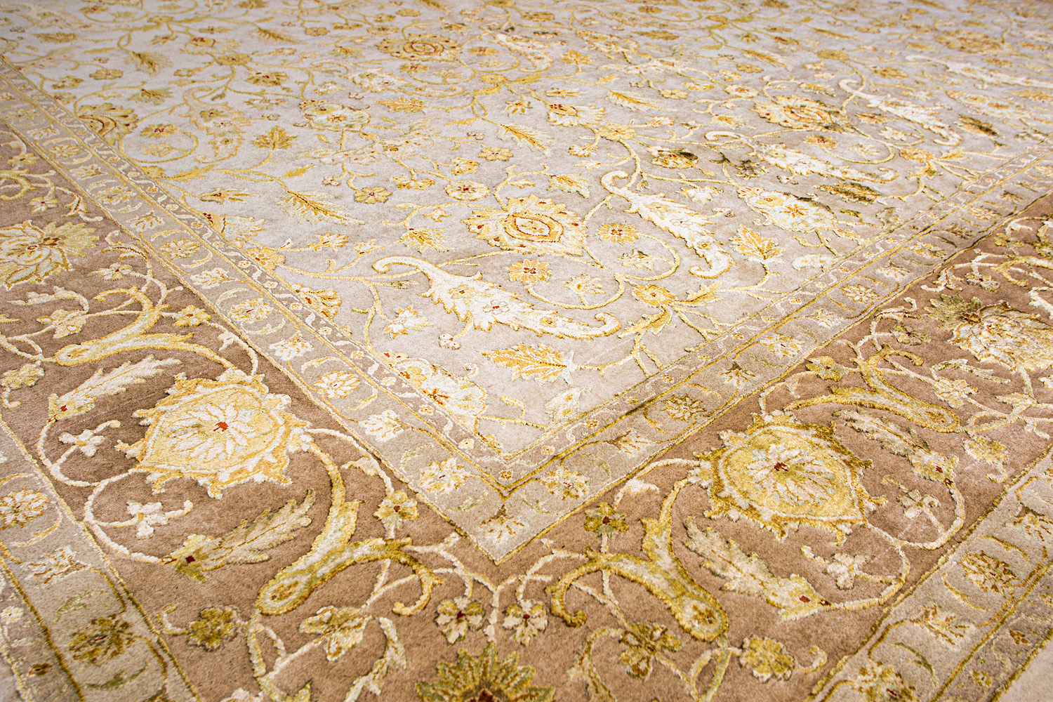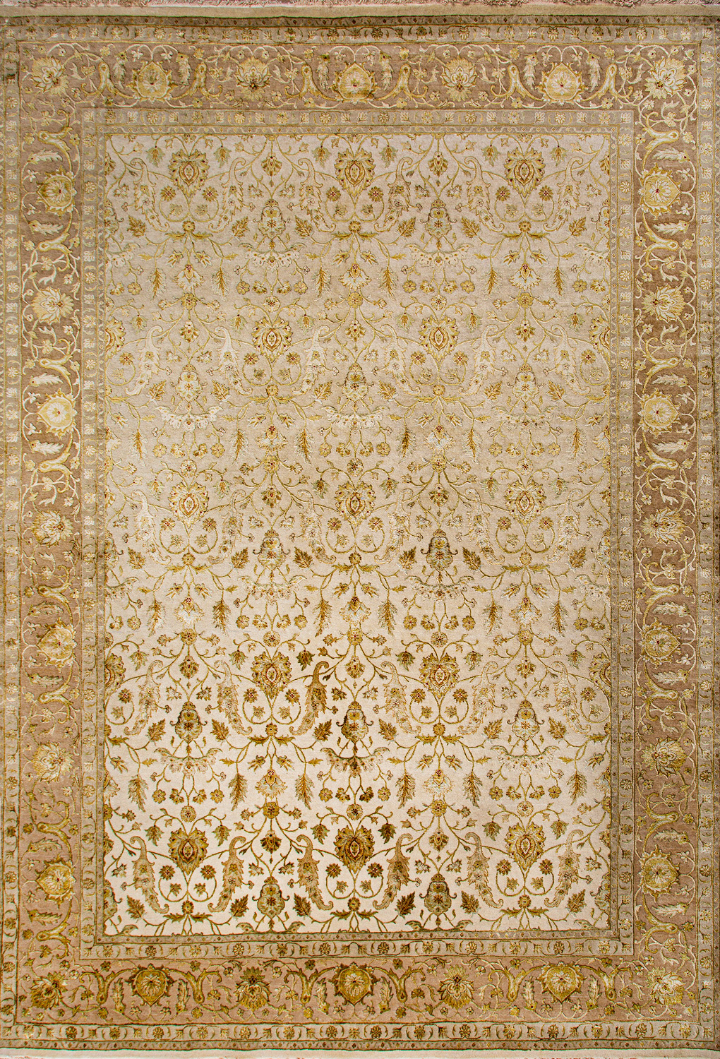 Более пяти веков назад в городе Агра зародилась знаменитая индийская школа ковроткачества, прославившаяся не меньше, чем расположенный здесь же Тадж-Махал. Мощное персидское влияние, помноженное на местный колорит, привело к появлению оригинальных орнаментов с богатыми растительными узорами — причудливым цветам, ветвям и листьям, разбросанным по всему полю ковра.