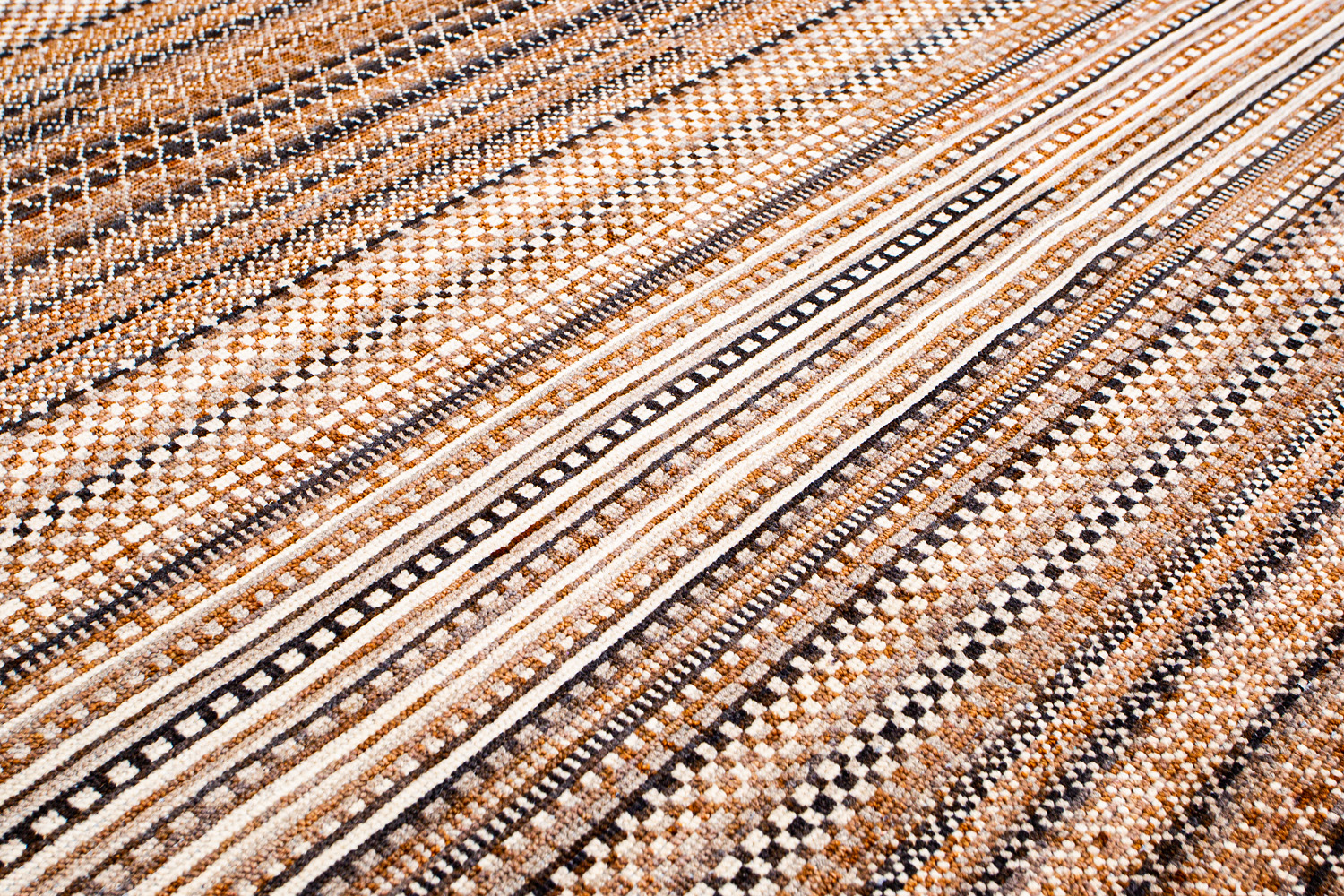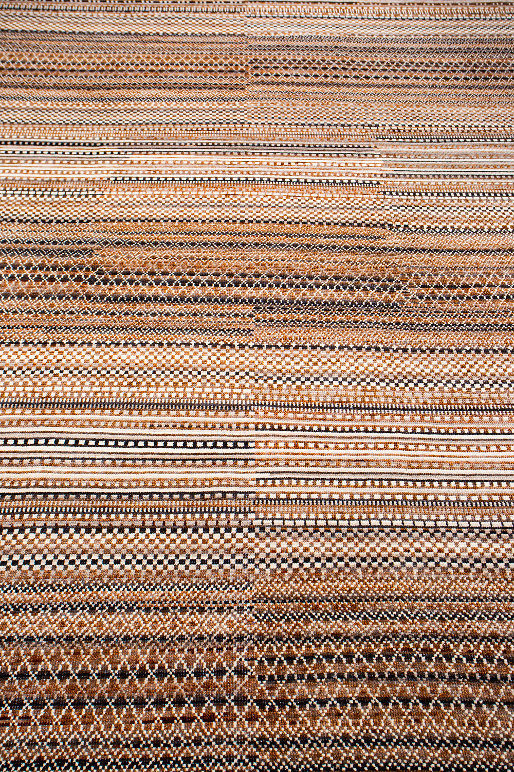 Дизайн ковров напоминает современные полотна художников-абстракционистов и производит столь же яркое и незабываемое впечатление в интерьере. Живописный эффект и необычная фактура зависят от выбора материала: натуральной шерсти, шёлка и от их сочетаний друг с другом. Ковры ткутся вручную в лучших мастерских Индии и Пакистана.