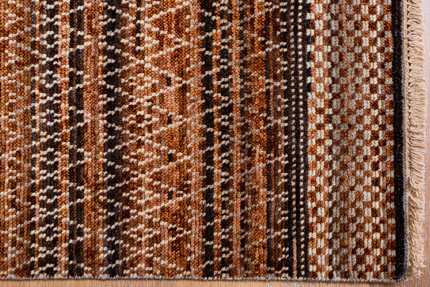 Дизайн ковров напоминает современные полотна художников-абстракционистов и производит столь же яркое и незабываемое впечатление в интерьере. Живописный эффект и необычная фактура зависят от выбора материала: натуральной шерсти, шёлка и от их сочетаний друг с другом. Ковры ткутся вручную в лучших мастерских Индии и Пакистана.