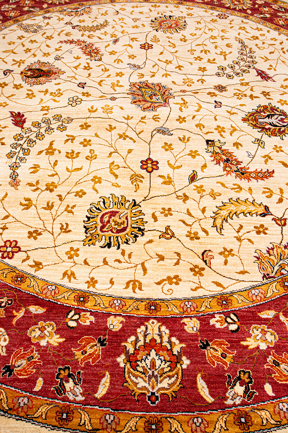 Более пяти веков назад в городе Агра зародилась знаменитая индийская школа ковроткачества, прославившаяся не меньше, чем расположенный здесь же Тадж-Махал. Мощное персидское влияние, помноженное на местный колорит, привело к появлению оригинальных орнаментов с богатыми растительными узорами — причудливым цветам, ветвям и листьям, разбросанным по всему полю ковра.