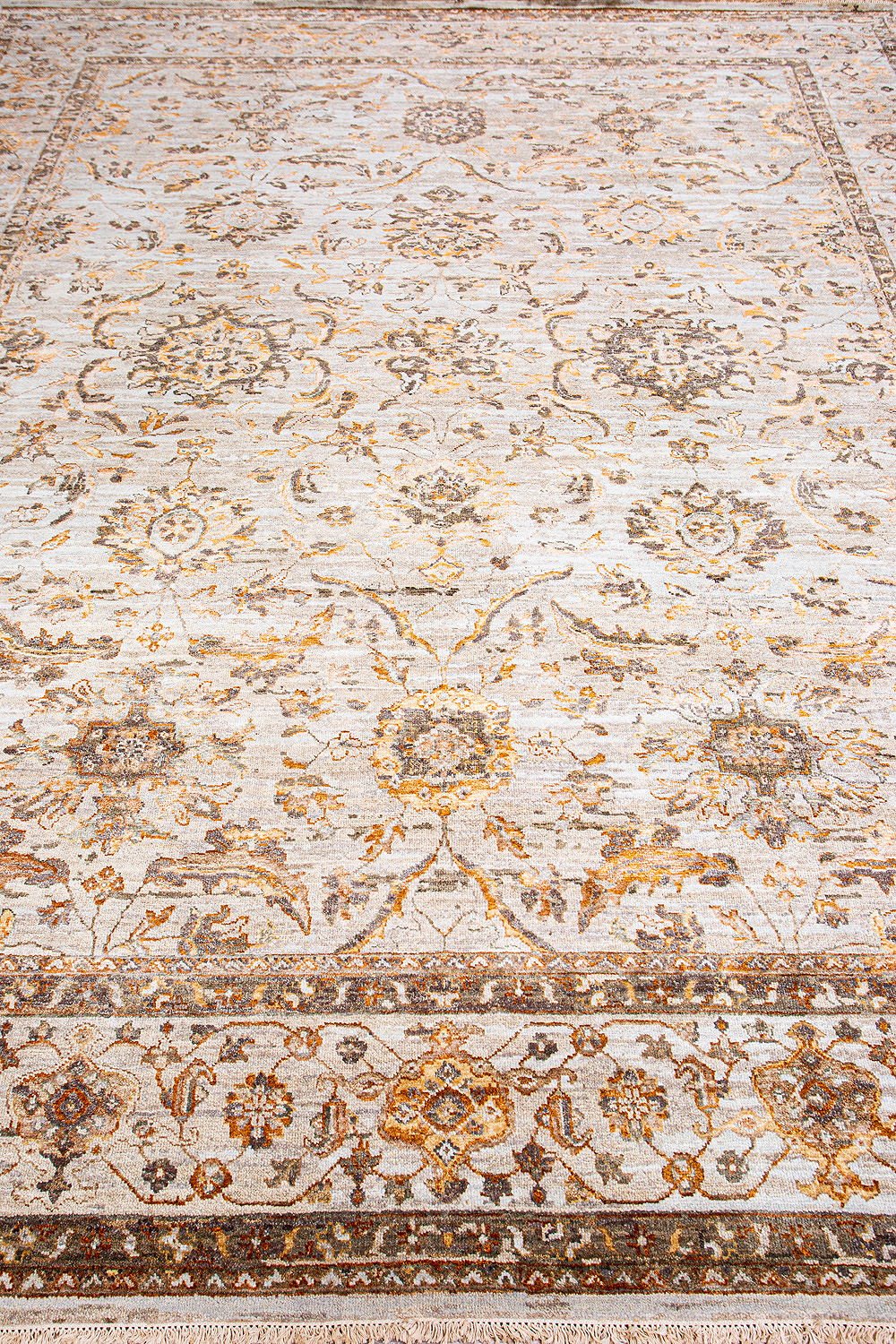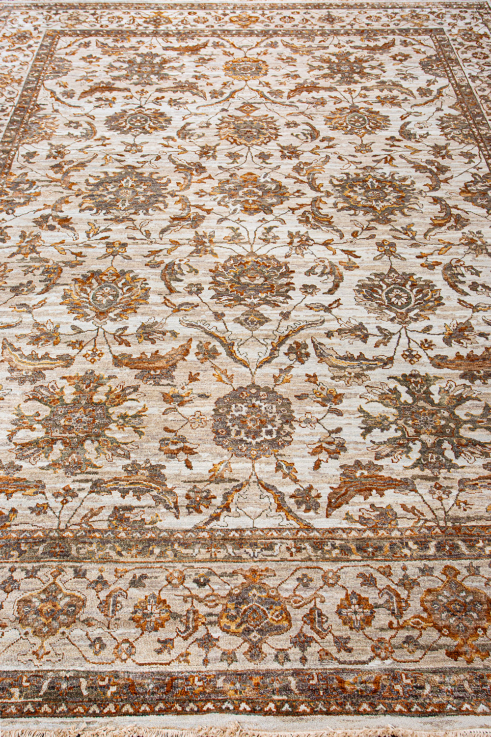 Более пяти веков назад в городе Агра зародилась знаменитая индийская школа ковроткачества, прославившаяся не меньше, чем расположенный здесь же Тадж-Махал. Мощное персидское влияние, помноженное на местный колорит, привело к появлению оригинальных орнаментов с богатыми растительными узорами — причудливым цветам, ветвям и листьям, разбросанным по всему полю ковра.