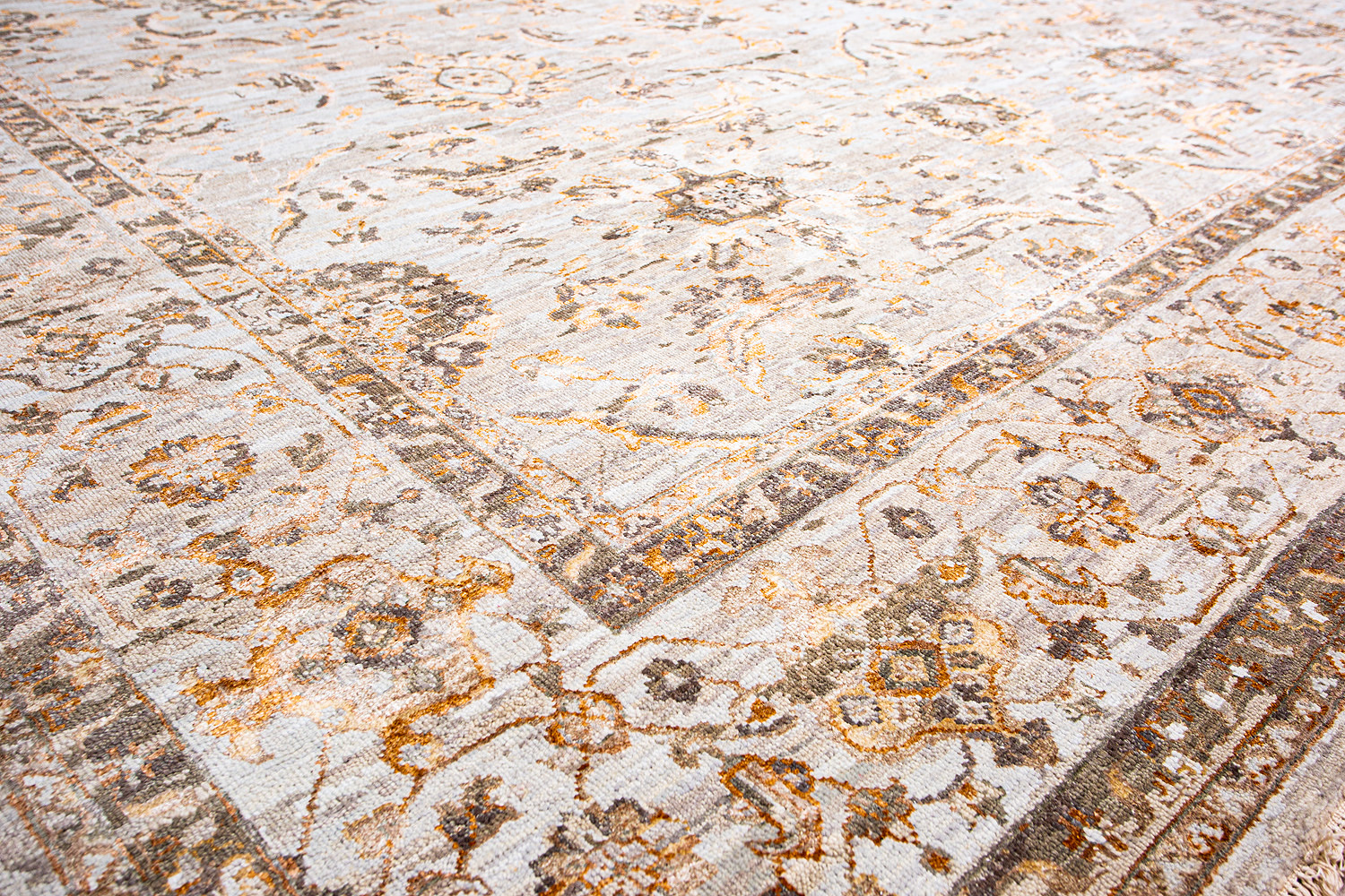 Каждый ковер в этой коллекции соткан вручную из шерсти и арт шёлка опытными индийскими мастерами.