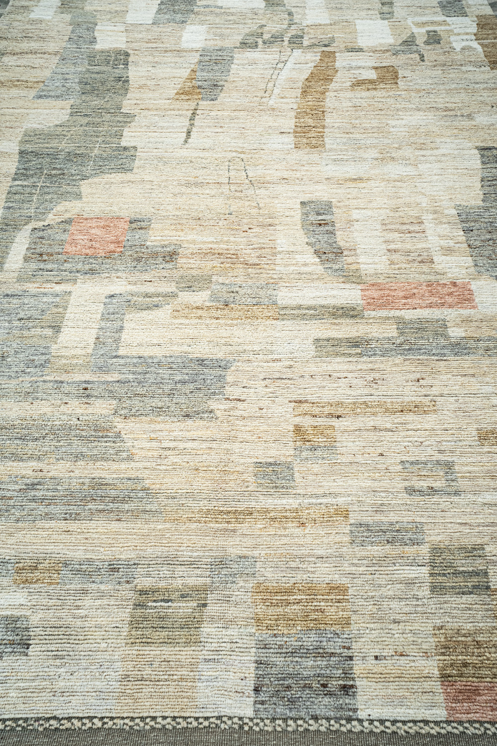 Крупные рисунки в виде линий и фигур на фактурной поверхности ковра превращаются в выразительные композиции. Они акцентируют на себе внимание и добавляют динамики в современный интерьер. Комбинации разных фигур и повторяющийся орнамент задают ритмическую основу пространству, привносят в него оригинальные оптические иллюзии.