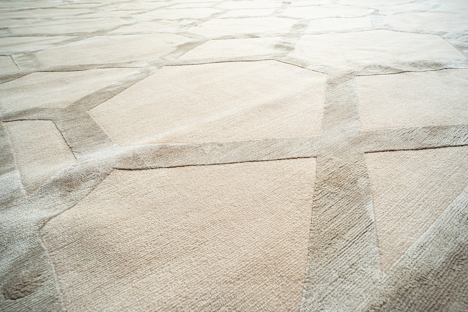 Крупные рисунки в виде линий и фигур на фактурной поверхности ковра превращаются в выразительные композиции. Они акцентируют на себе внимание и добавляют динамики в современный интерьер. Комбинации разных фигур и повторяющийся орнамент задают ритмическую основу пространству, привносят в него оригинальные оптические иллюзии.