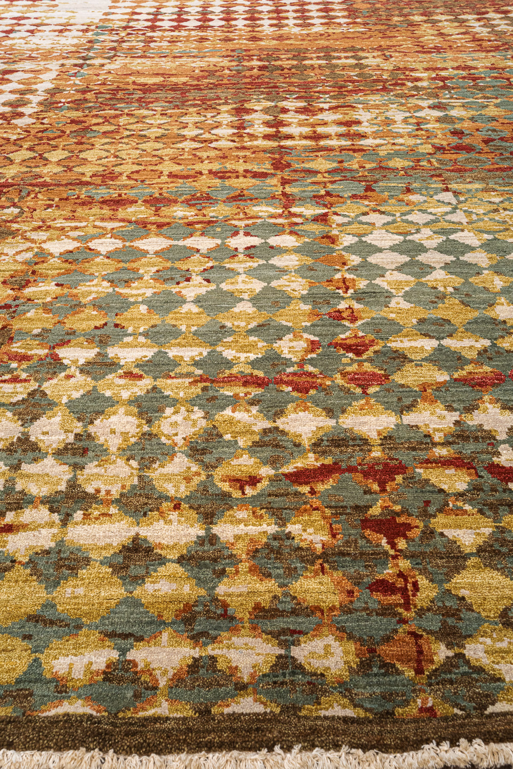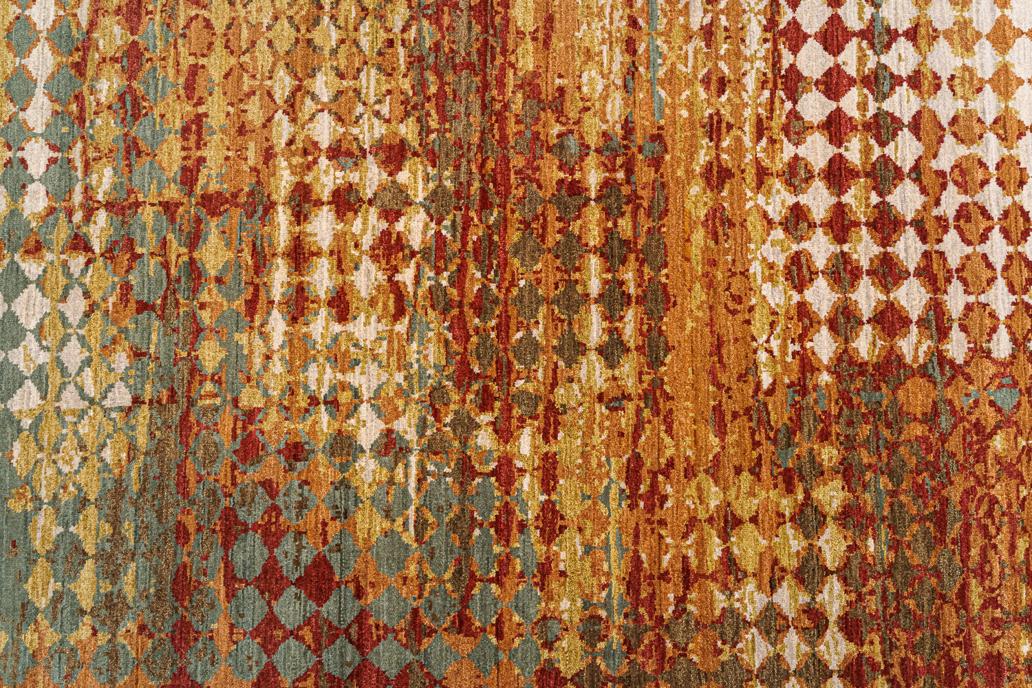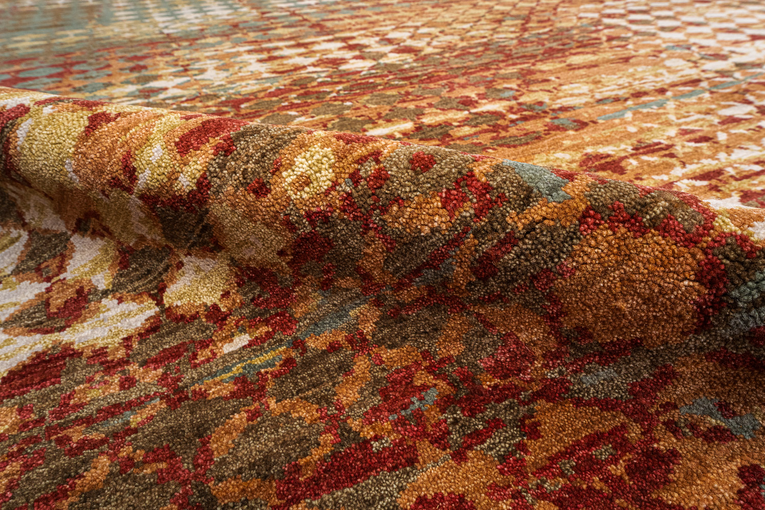 Дизайн ковров напоминает современные полотна художников-абстракционистов и производит столь же яркое и незабываемое впечатление в интерьере. Живописный эффект и необычная фактура зависят от выбора материала: натуральной шерсти, шёлка и от их сочетаний друг с другом. Ковры ткутся вручную в лучших мастерских Индии и Пакистана.