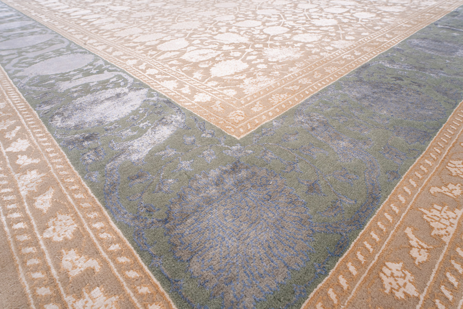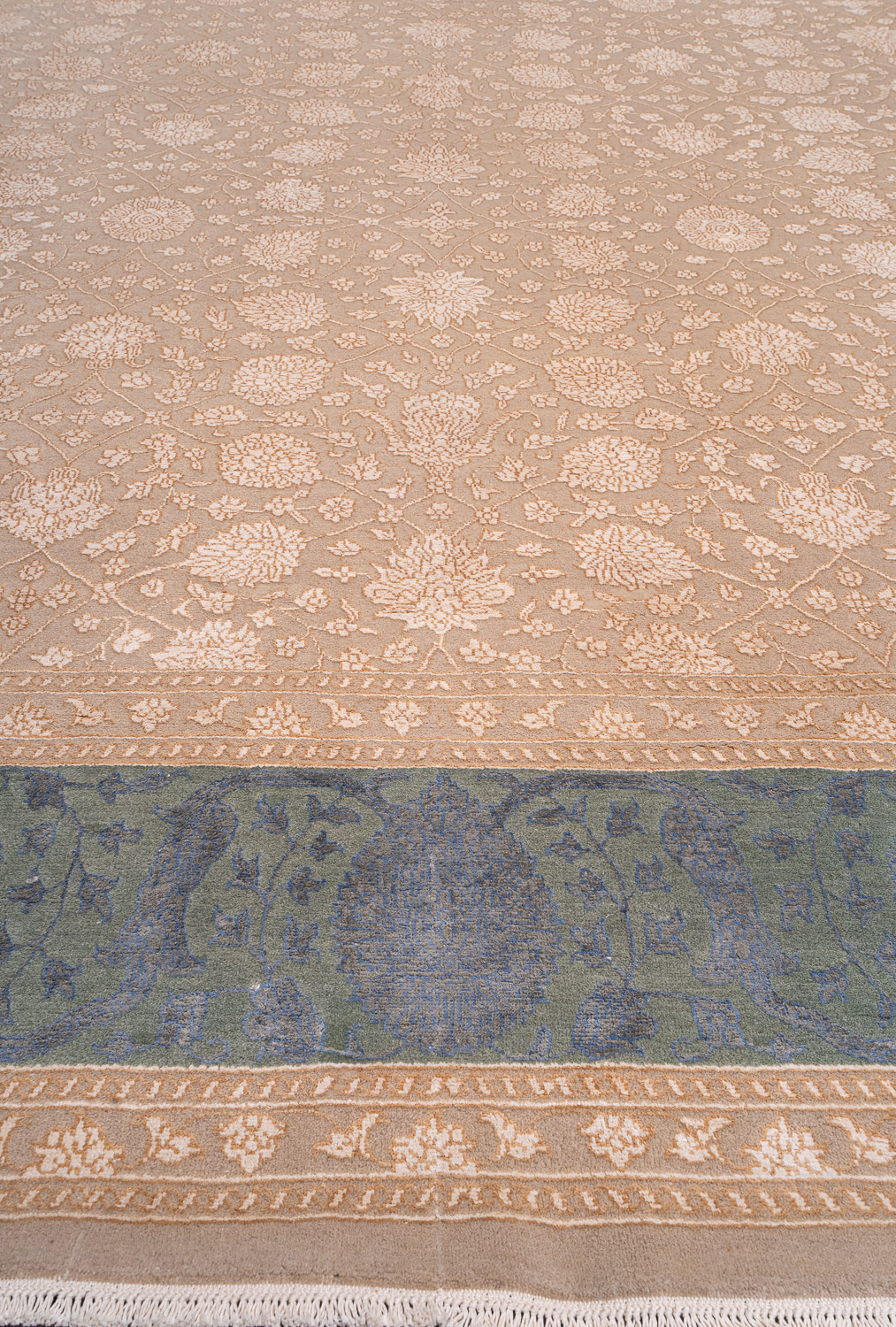 Каждый ковер в этой коллекции соткан вручную из шерсти и арт шёлка опытными индийскими мастерами.