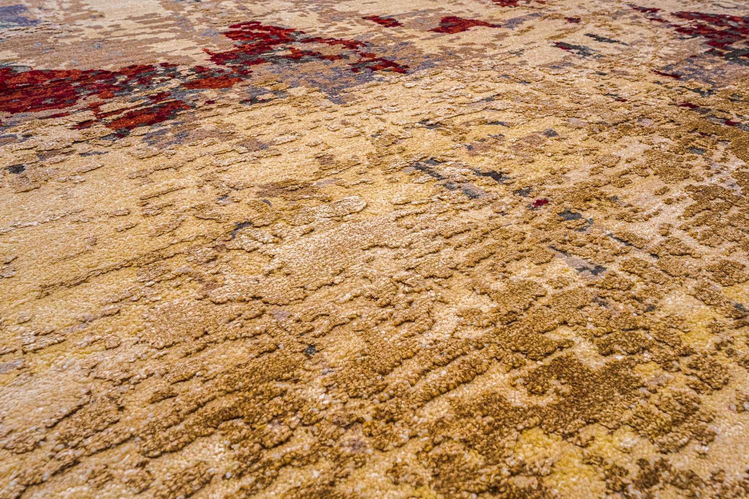 Дизайн ковров напоминает современные полотна художников-абстракционистов и производит столь же яркое и незабываемое впечатление в интерьере. Живописный эффект и необычная фактура зависят от выбора материала: натуральной шерсти, шёлка и от их сочетаний друг с другом. Ковры ткутся вручную в лучших мастерских Индии и Пакистана.