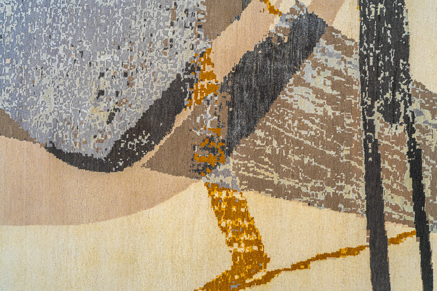 Дизайн ковров напоминает современные полотна художников-абстракционистов и производит столь же яркое и незабываемое впечатление в интерьере. Живописный эффект и необычная фактура зависят от выбора материала: натуральной шерсти, шёлка и от их сочетаний друг с другом. Ковры ткутся вручную в лучших мастерских Индии и Пакистана.