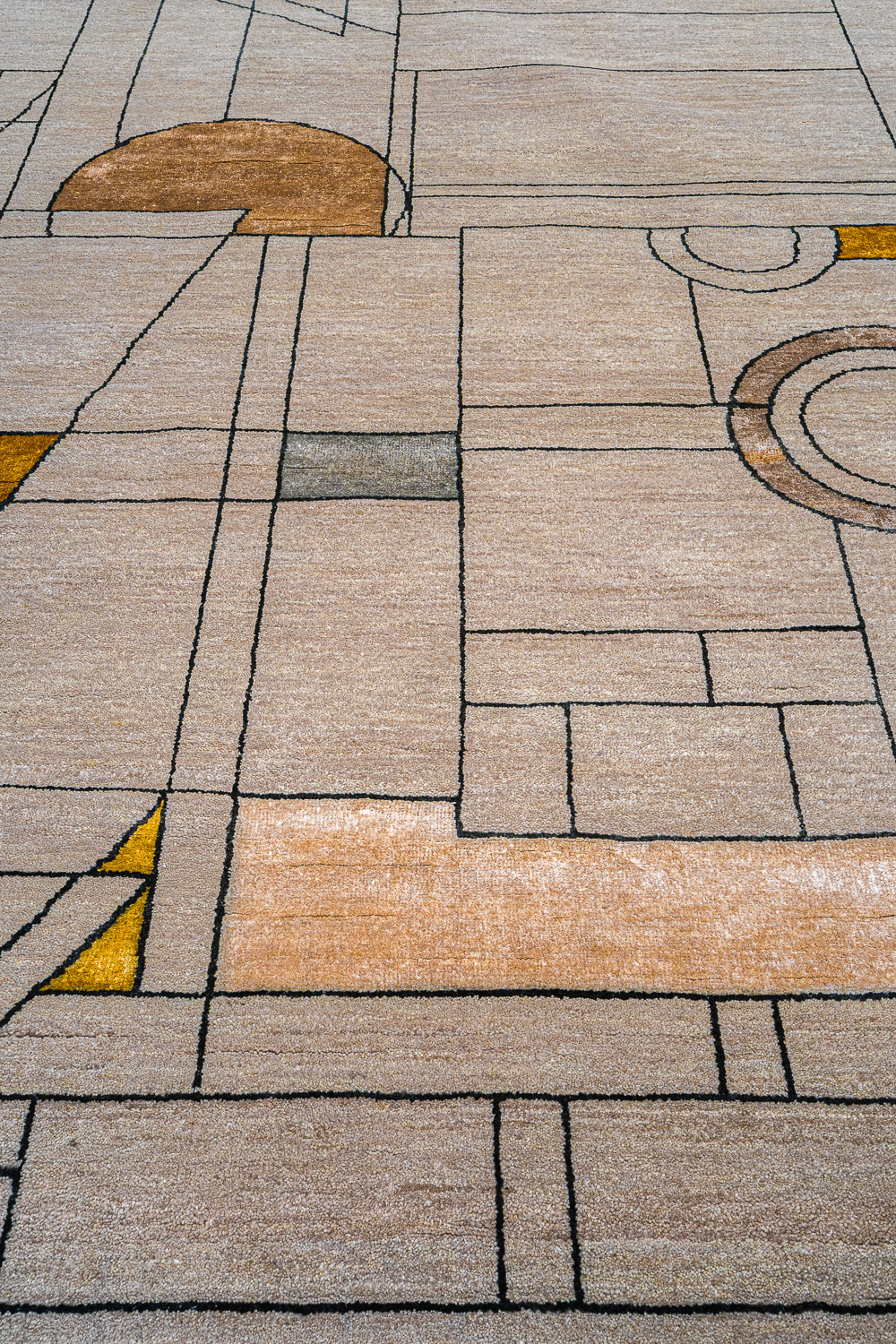Дизайн ковров напоминает современные полотна художников-абстракционистов и производит столь же яркое и незабываемое впечатление в интерьере. Живописный эффект и необычная фактура зависят от выбора материала: натуральной шерсти, шёлка и от их сочетаний друг с другом. Ковры ткутся вручную в лучших мастерских Индии и Пакистана.