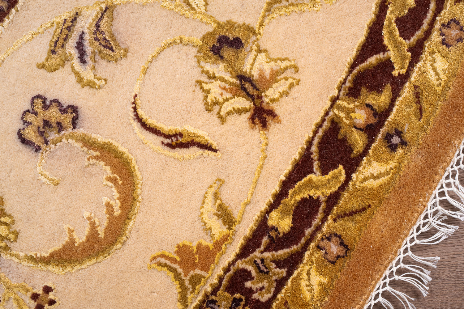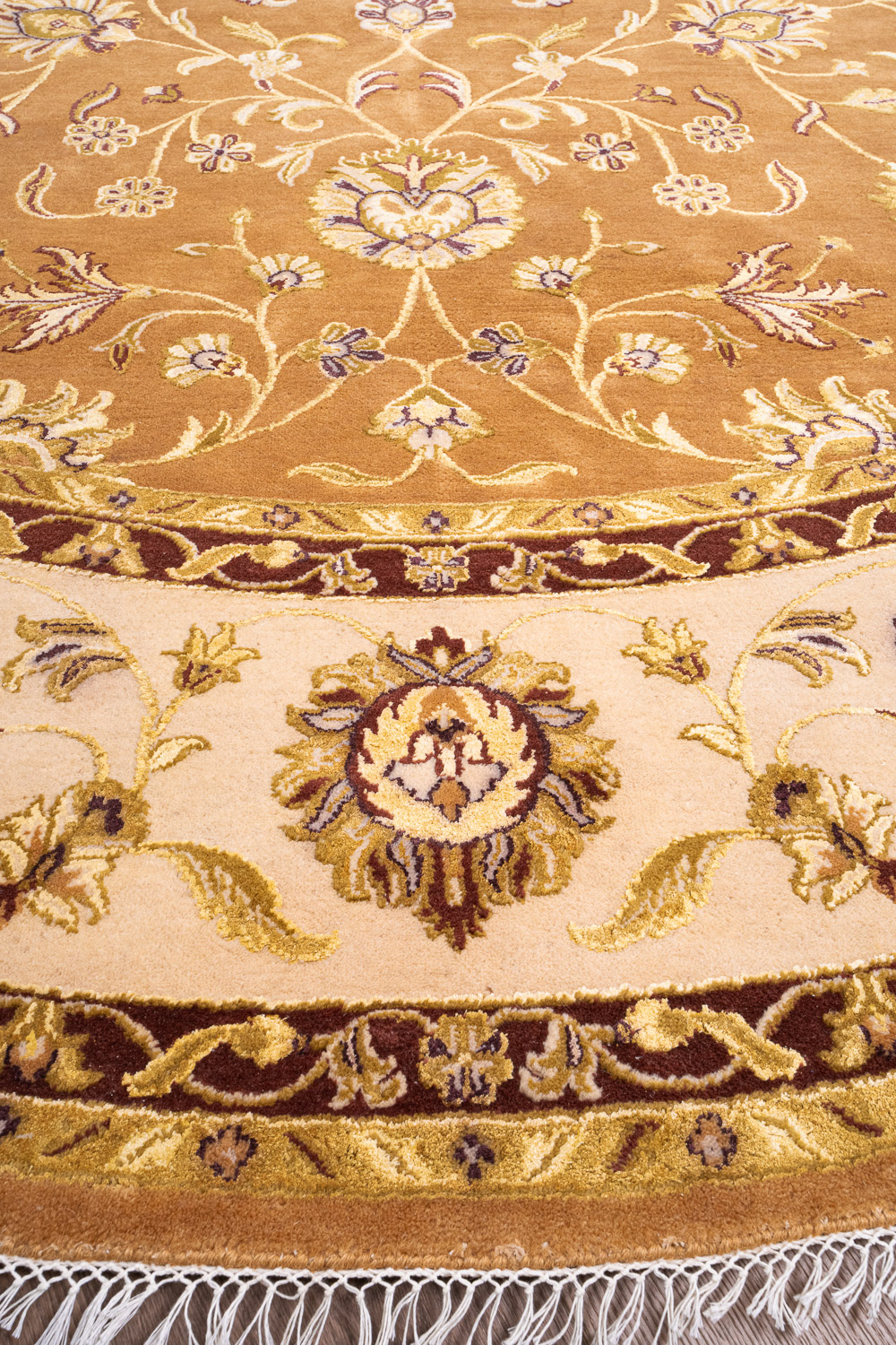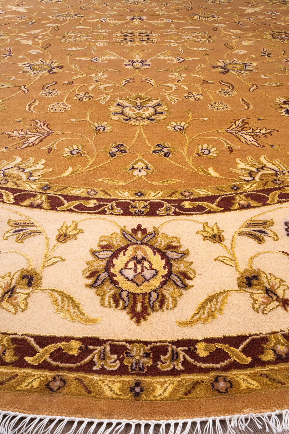 Более пяти веков назад в городе Агра зародилась знаменитая индийская школа ковроткачества, прославившаяся не меньше, чем расположенный здесь же Тадж-Махал. Мощное персидское влияние, помноженное на местный колорит, привело к появлению оригинальных орнаментов с богатыми растительными узорами — причудливым цветам, ветвям и листьям, разбросанным по всему полю ковра.