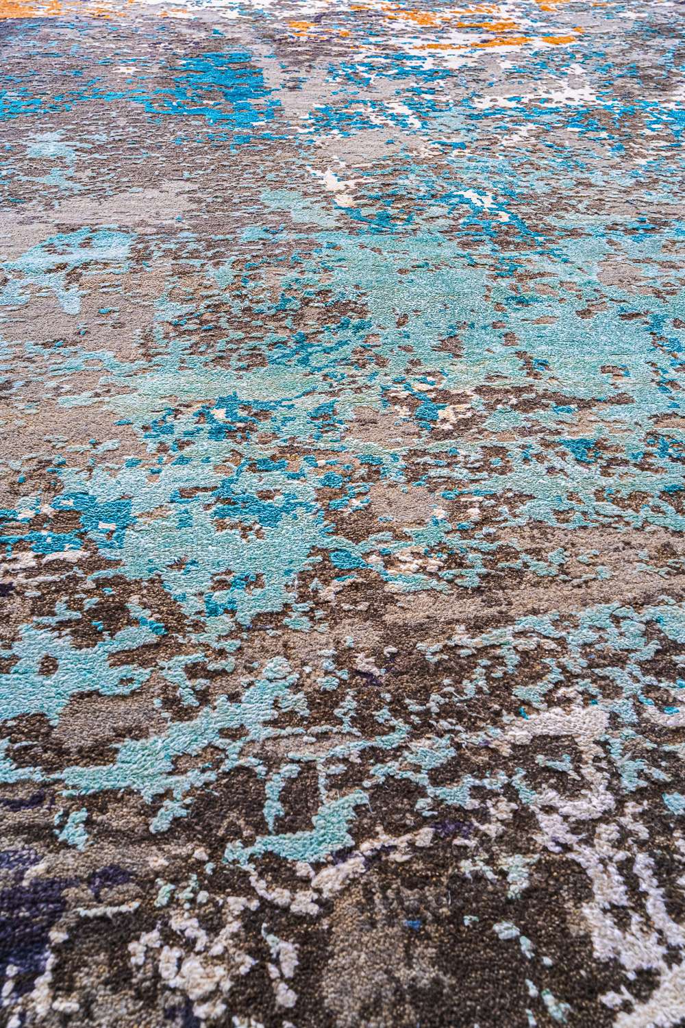 Дизайн ковров напоминает современные полотна художников-абстракционистов и производит столь же яркое и незабываемое впечатление в интерьере. Живописный эффект и необычная фактура зависят от выбора материала: натуральной шерсти, шёлка и от их сочетаний друг с другом. Ковры ткутся вручную в лучших мастерских Индии и Пакистана.