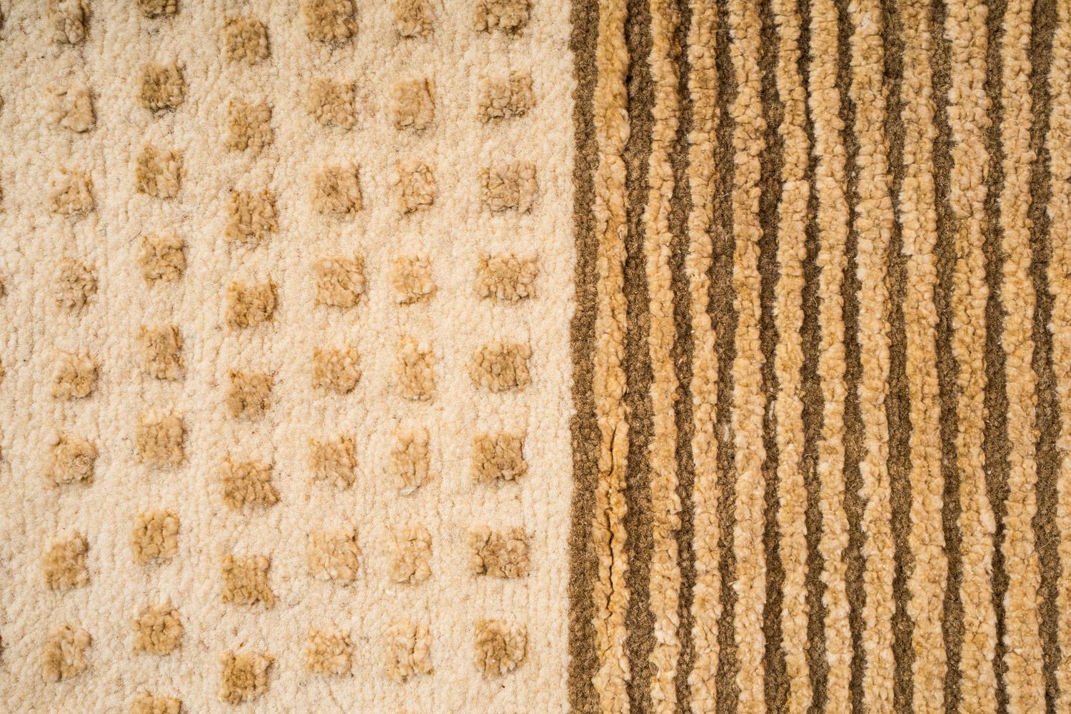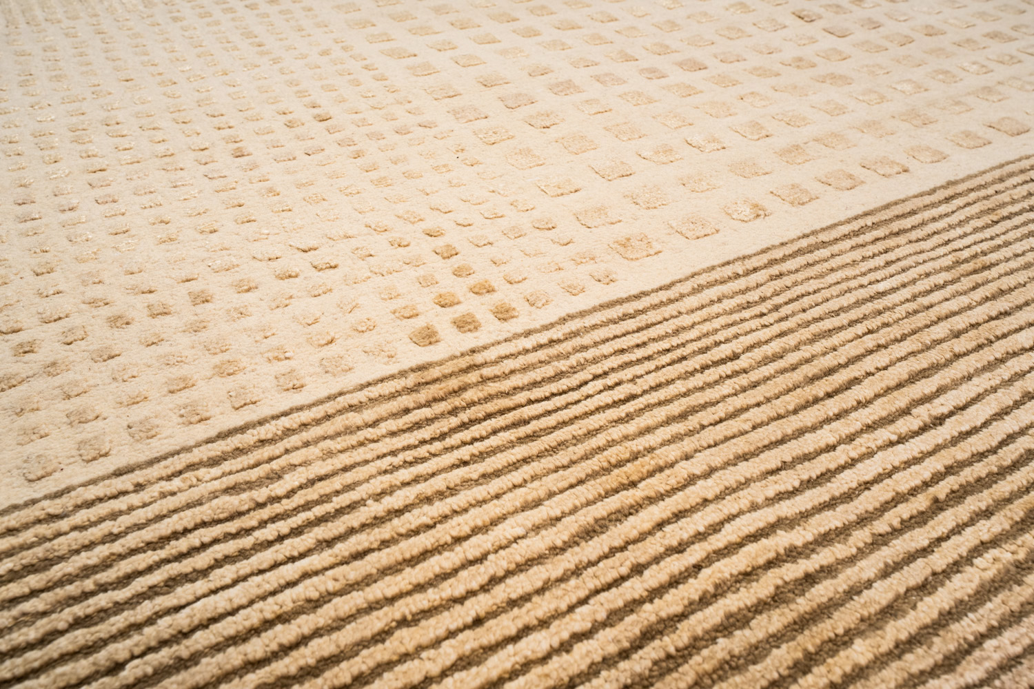 Крупные рисунки в виде линий и фигур на фактурной поверхности ковра превращаются в выразительные композиции. Они акцентируют на себе внимание и добавляют динамики в современный интерьер. Комбинации разных фигур и повторяющийся орнамент задают ритмическую основу пространству, привносят в него оригинальные оптические иллюзии.