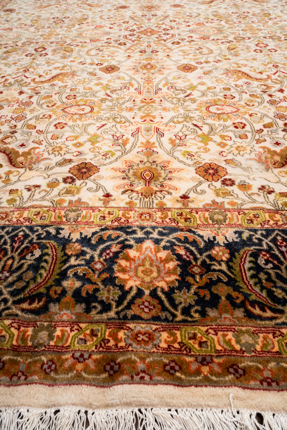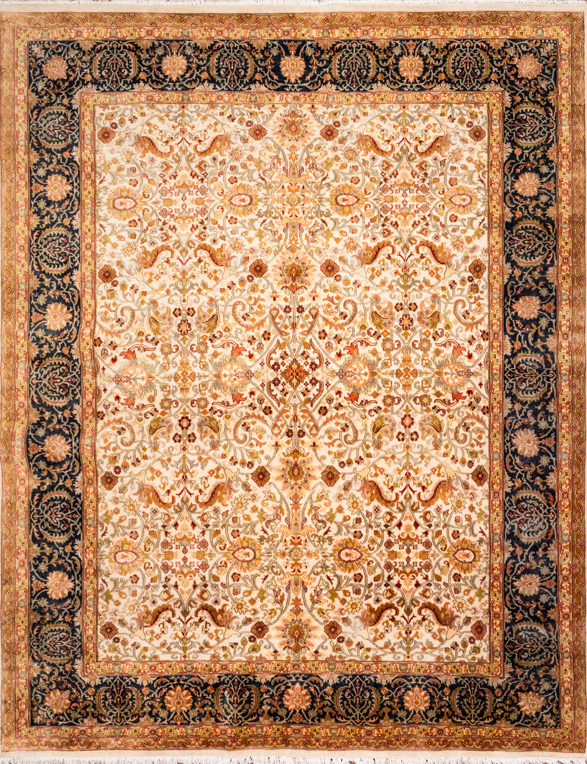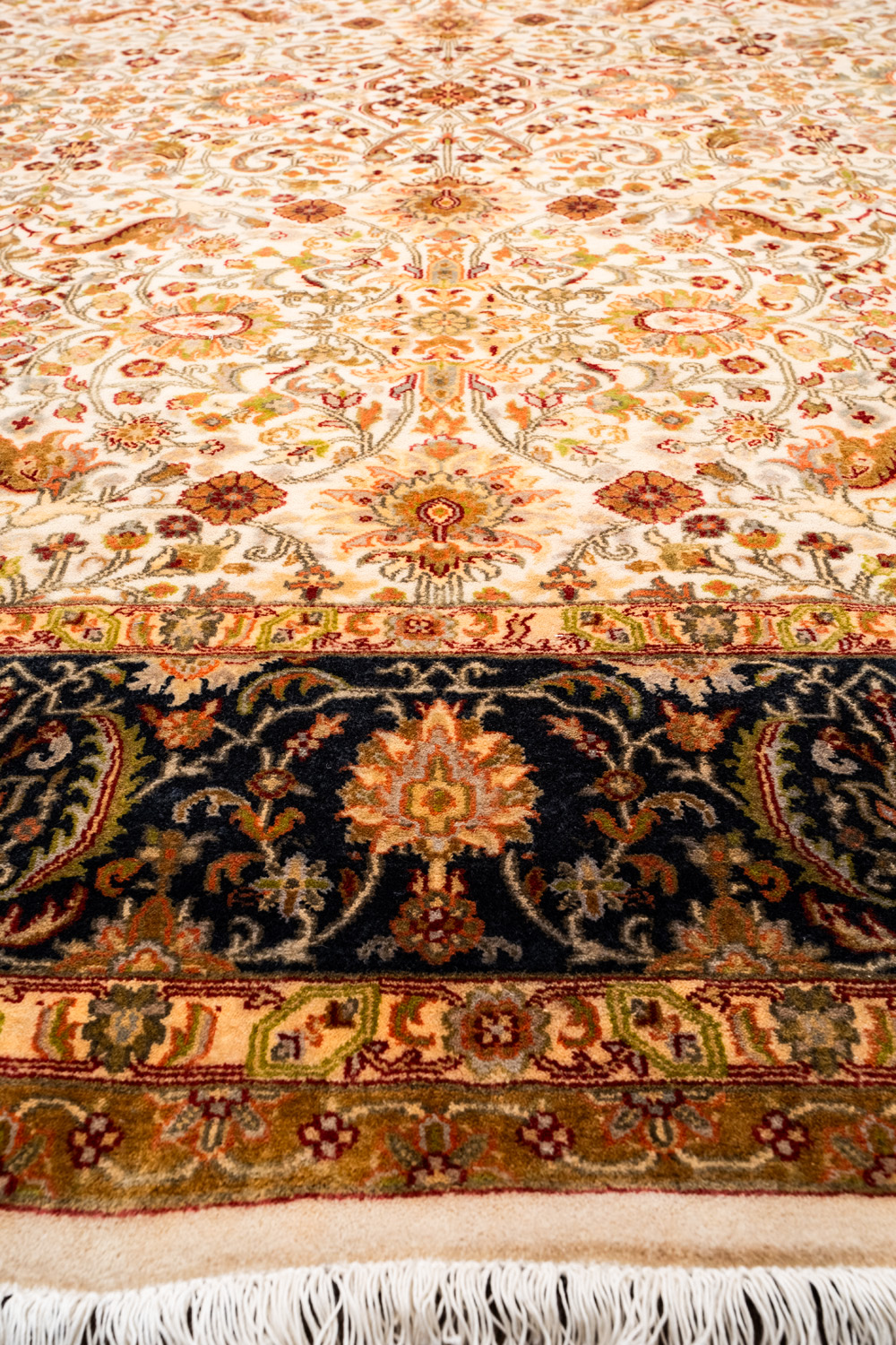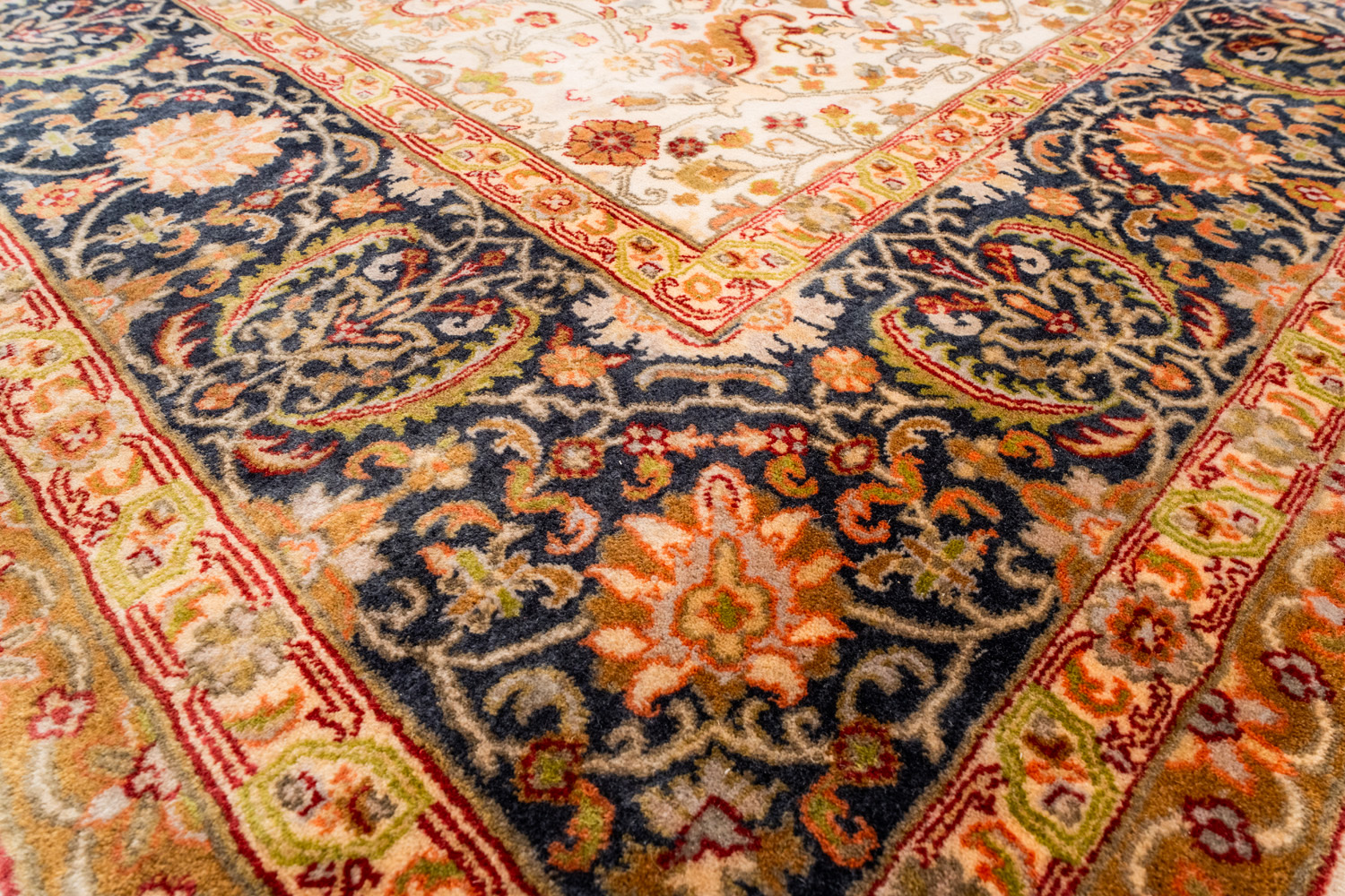 Более пяти веков назад в городе Агра зародилась знаменитая индийская школа ковроткачества, прославившаяся не меньше, чем расположенный здесь же Тадж-Махал. Мощное персидское влияние, помноженное на местный колорит, привело к появлению оригинальных орнаментов с богатыми растительными узорами — причудливым цветам, ветвям и листьям, разбросанным по всему полю ковра.
