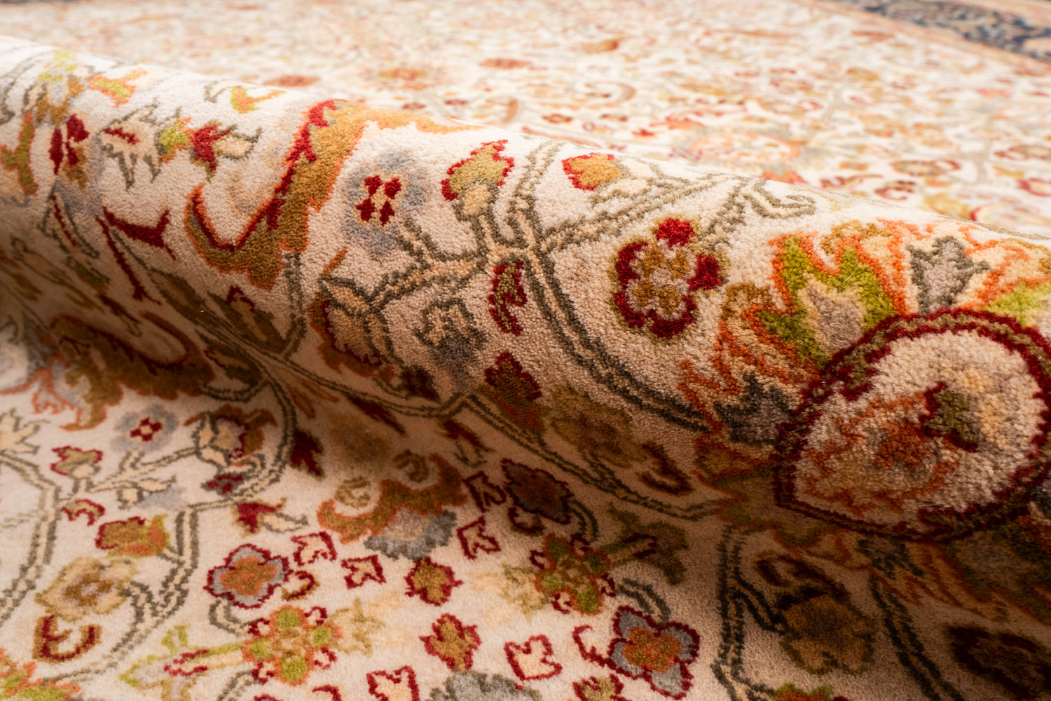 Каждый ковер в этой коллекции соткан вручную из шерсти и арт шёлка опытными индийскими мастерами.