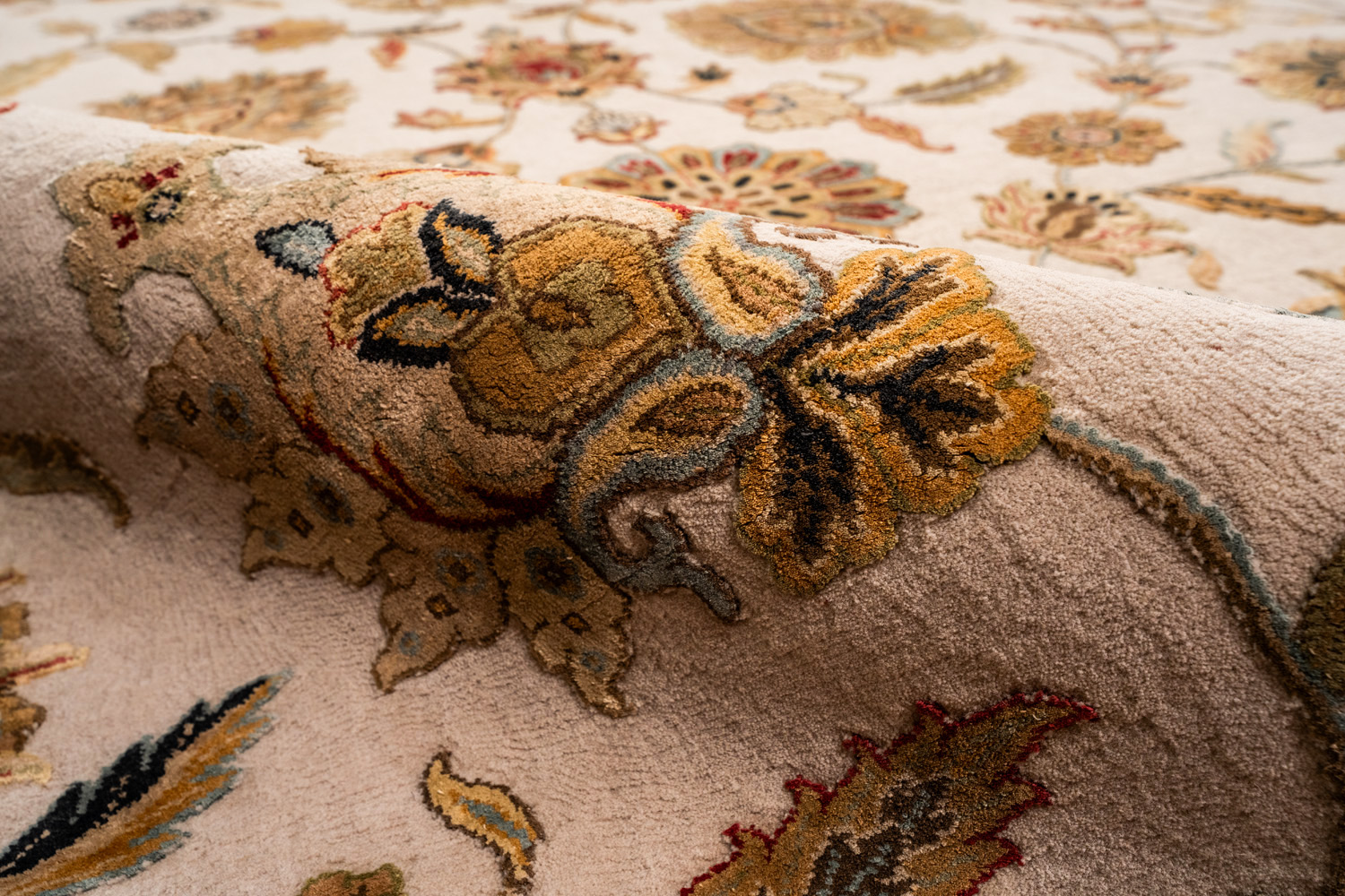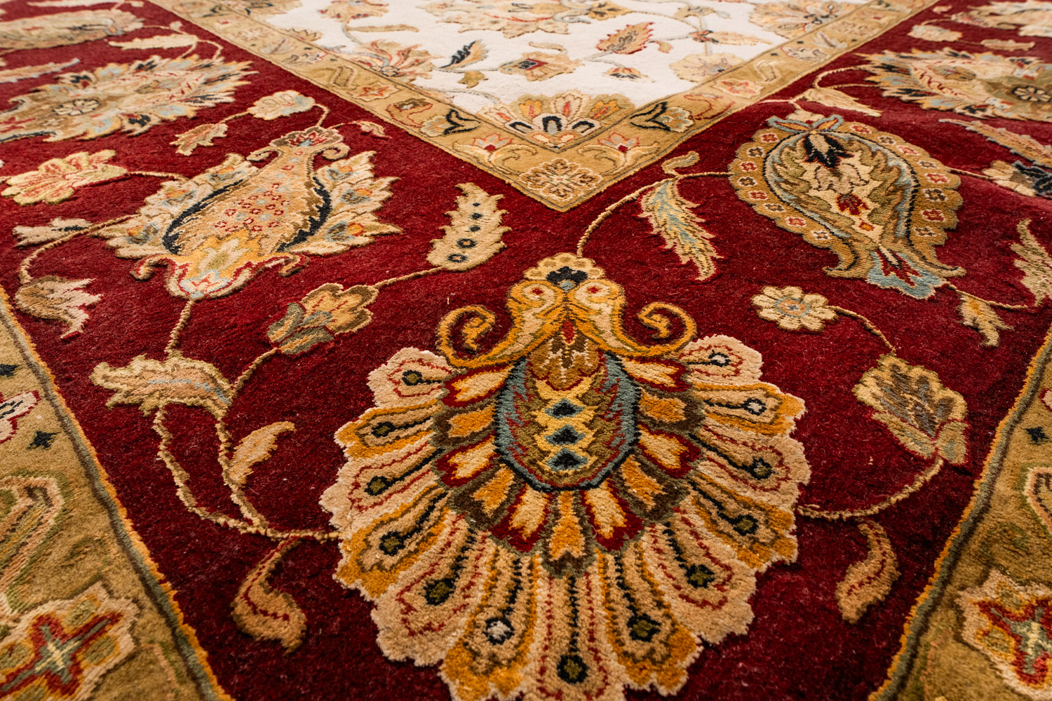 Более пяти веков назад в городе Агра зародилась знаменитая индийская школа ковроткачества, прославившаяся не меньше, чем расположенный здесь же Тадж-Махал. Мощное персидское влияние, помноженное на местный колорит, привело к появлению оригинальных орнаментов с богатыми растительными узорами — причудливым цветам, ветвям и листьям, разбросанным по всему полю ковра.