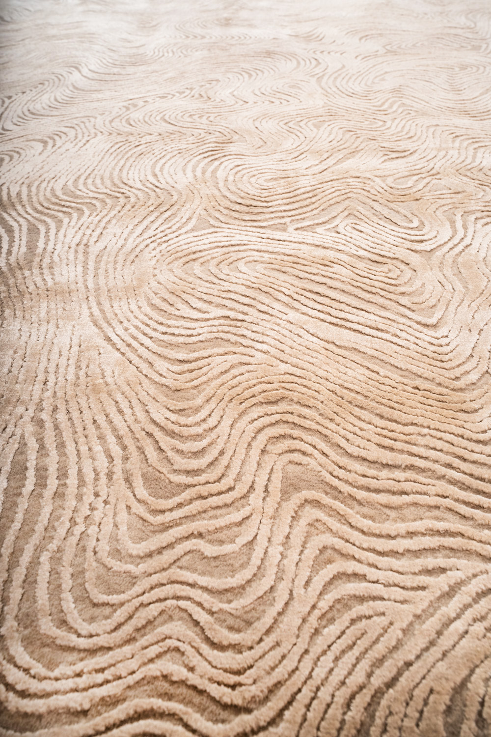 Дизайн ковров напоминает современные полотна художников-абстракционистов и производит столь же яркое и незабываемое впечатление в интерьере. Живописный эффект и необычная фактура зависят от выбора материала: натуральной шерсти, шёлка и от их сочетаний друг с другом. Ковры ткутся вручную в лучших мастерских Индии и Пакистана.