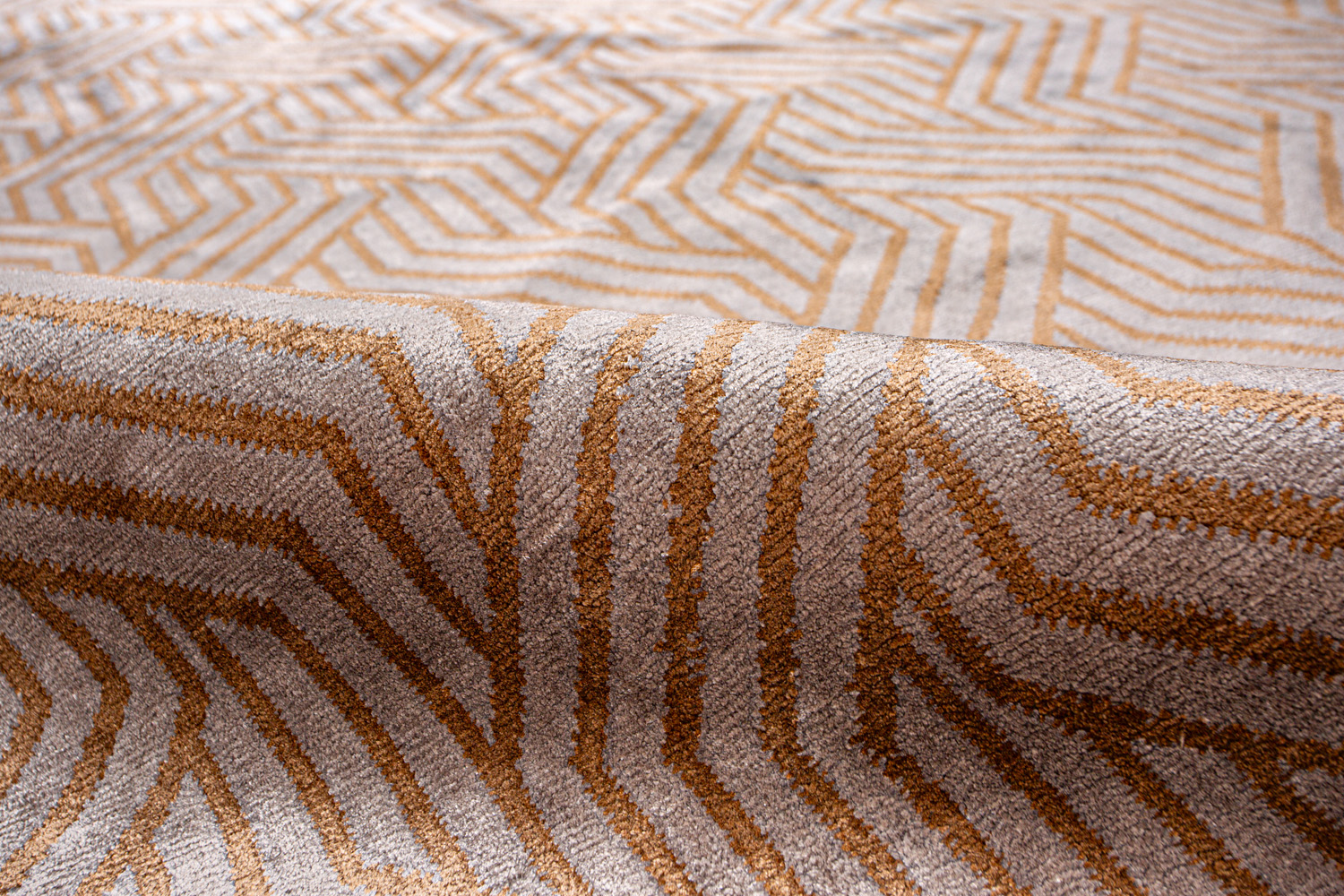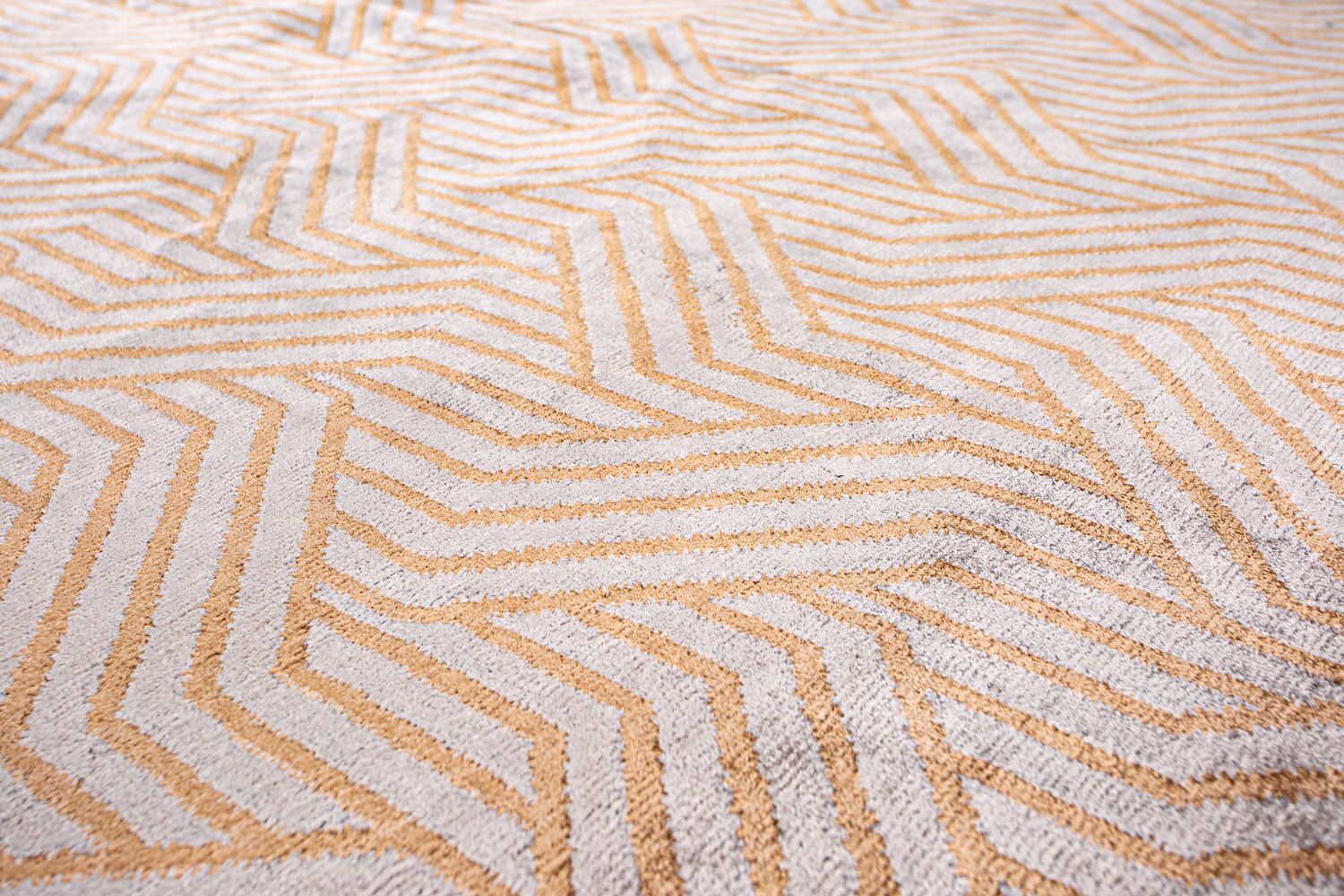 Крупные рисунки в виде линий и фигур на фактурной поверхности ковра превращаются в выразительные композиции. Они акцентируют на себе внимание и добавляют динамики в современный интерьер. Комбинации разных фигур и повторяющийся орнамент задают ритмическую основу пространству, привносят в него оригинальные оптические иллюзии.