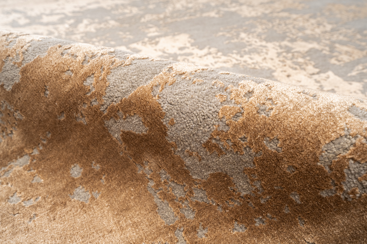 Дизайн ковров напоминает современные полотна художников-абстракционистов и производит столь же яркое и незабываемое впечатление в интерьере. Живописный эффект и необычная фактура зависят от выбора материала: натуральной шерсти, шёлка и от их сочетаний друг с другом. Ковры ткутся вручную в лучших мастерских Индии и Пакистана.