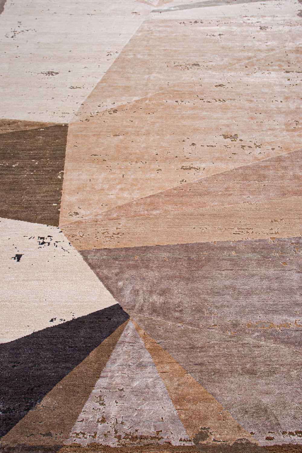 Дизайн ковров напоминает современные полотна художников-абстракционистов и производит столь же яркое и незабываемое впечатление в интерьере. Живописный эффект и необычная фактура зависят от выбора материала: натуральной шерсти, шёлка и от их сочетаний друг с другом. Ковры ткутся вручную в лучших мастерских Индии и Пакистана.