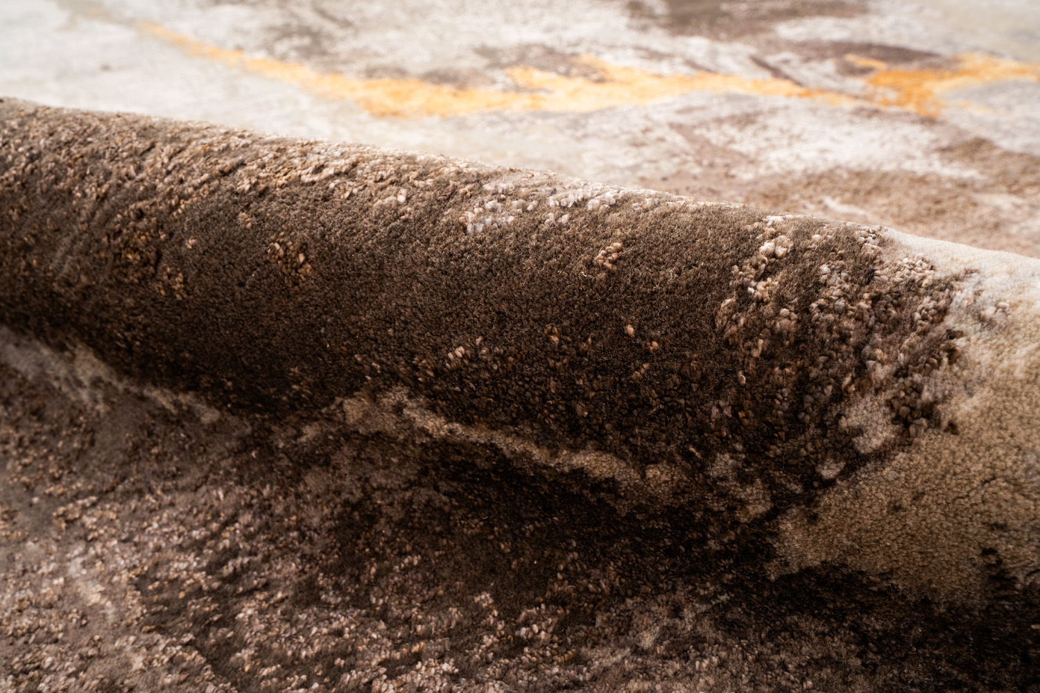Дизайн ковров напоминает современные полотна художников-абстракционистов и производит столь же яркое и незабываемое впечатление в интерьере. Живописный эффект и необычная фактура зависят от выбора материала: натуральной шерсти, шёлка и от их сочетаний друг с другом. Ковры ткутся вручную в лучших мастерских Индии и Пакистана.