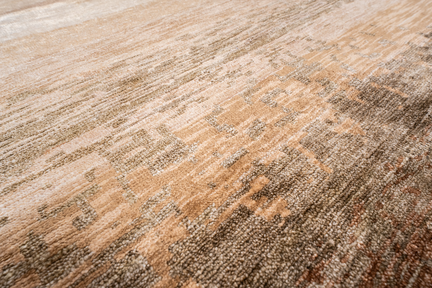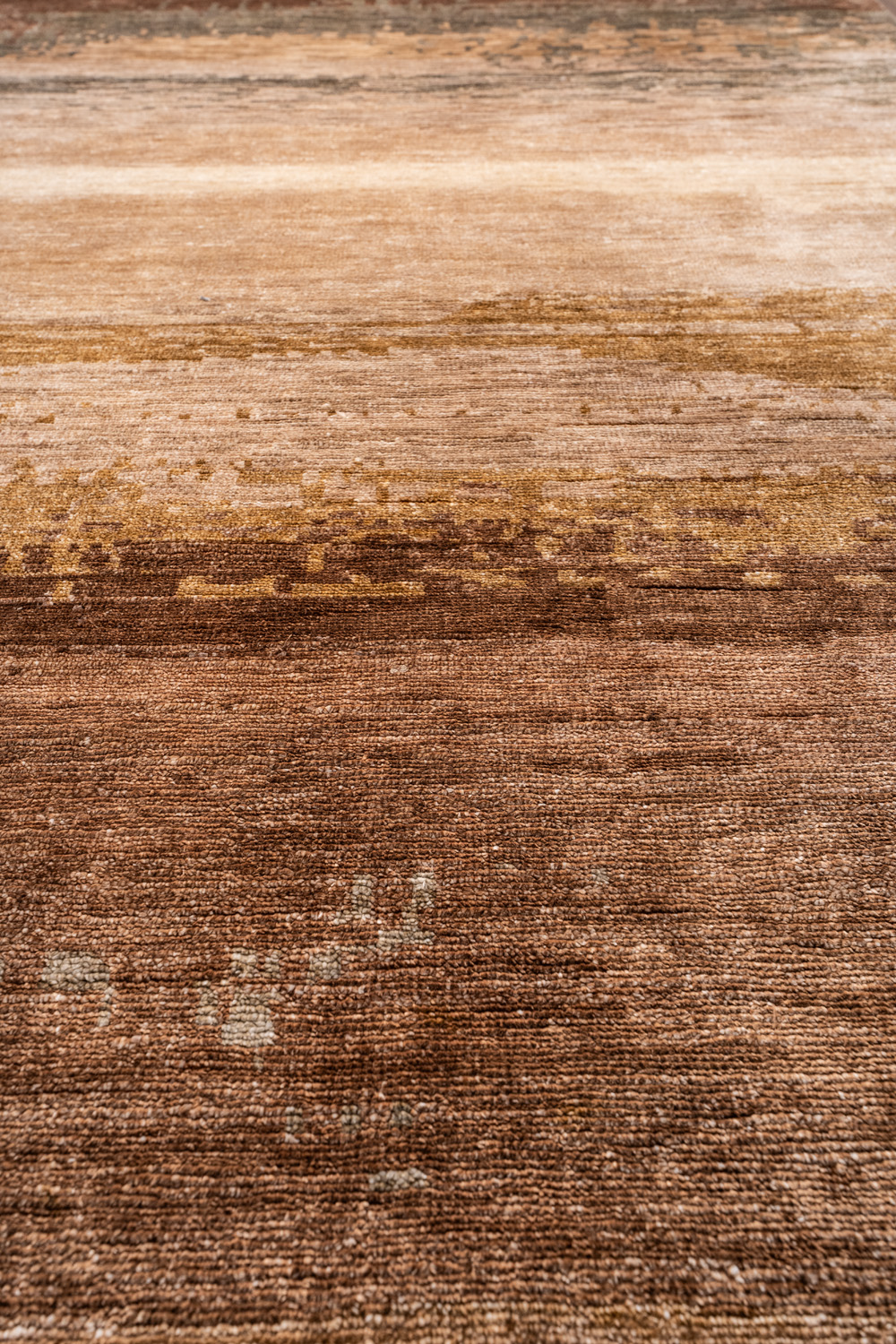 Дизайн ковров напоминает современные полотна художников-абстракционистов и производит столь же яркое и незабываемое впечатление в интерьере. Живописный эффект и необычная фактура зависят от выбора материала: натуральной шерсти, шёлка и от их сочетаний друг с другом. Ковры ткутся вручную в лучших мастерских Индии и Пакистана.