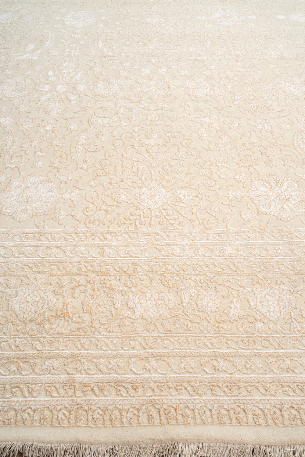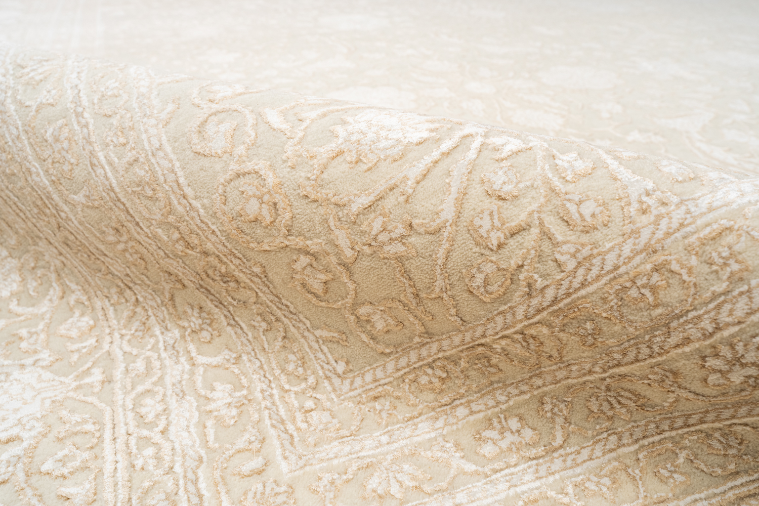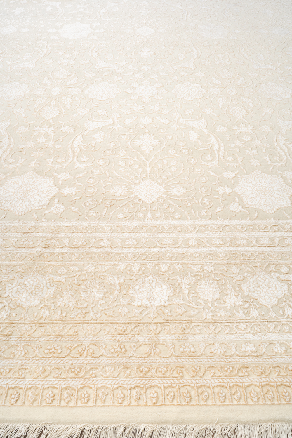 Каждый ковер в этой коллекции соткан вручную из шерсти и арт шёлка опытными индийскими мастерами.