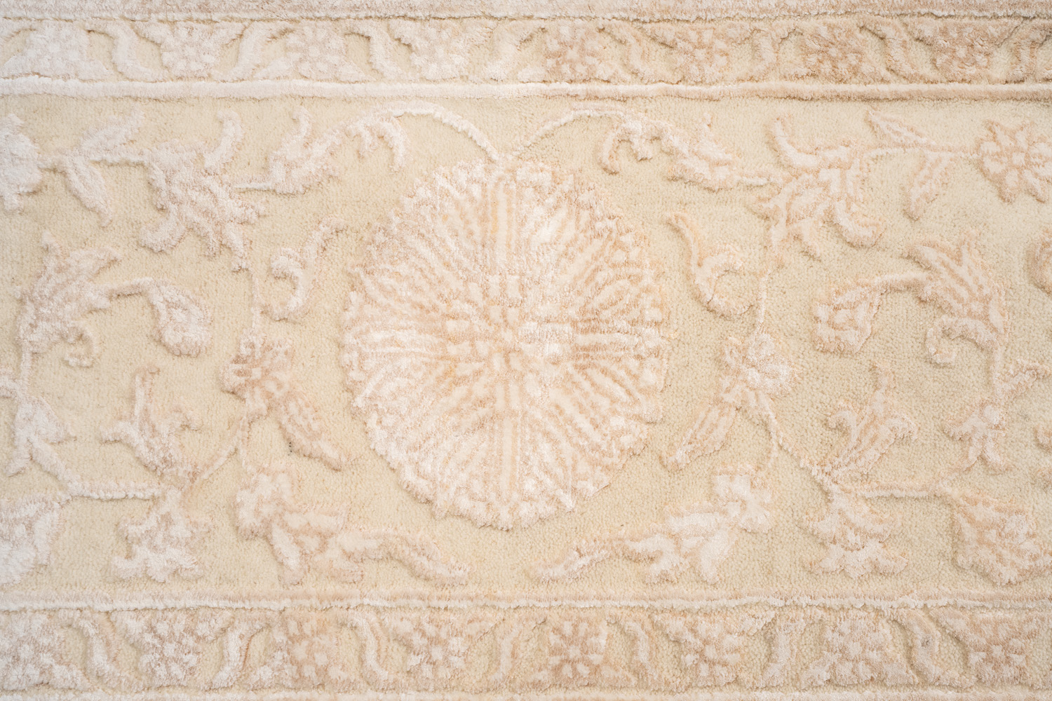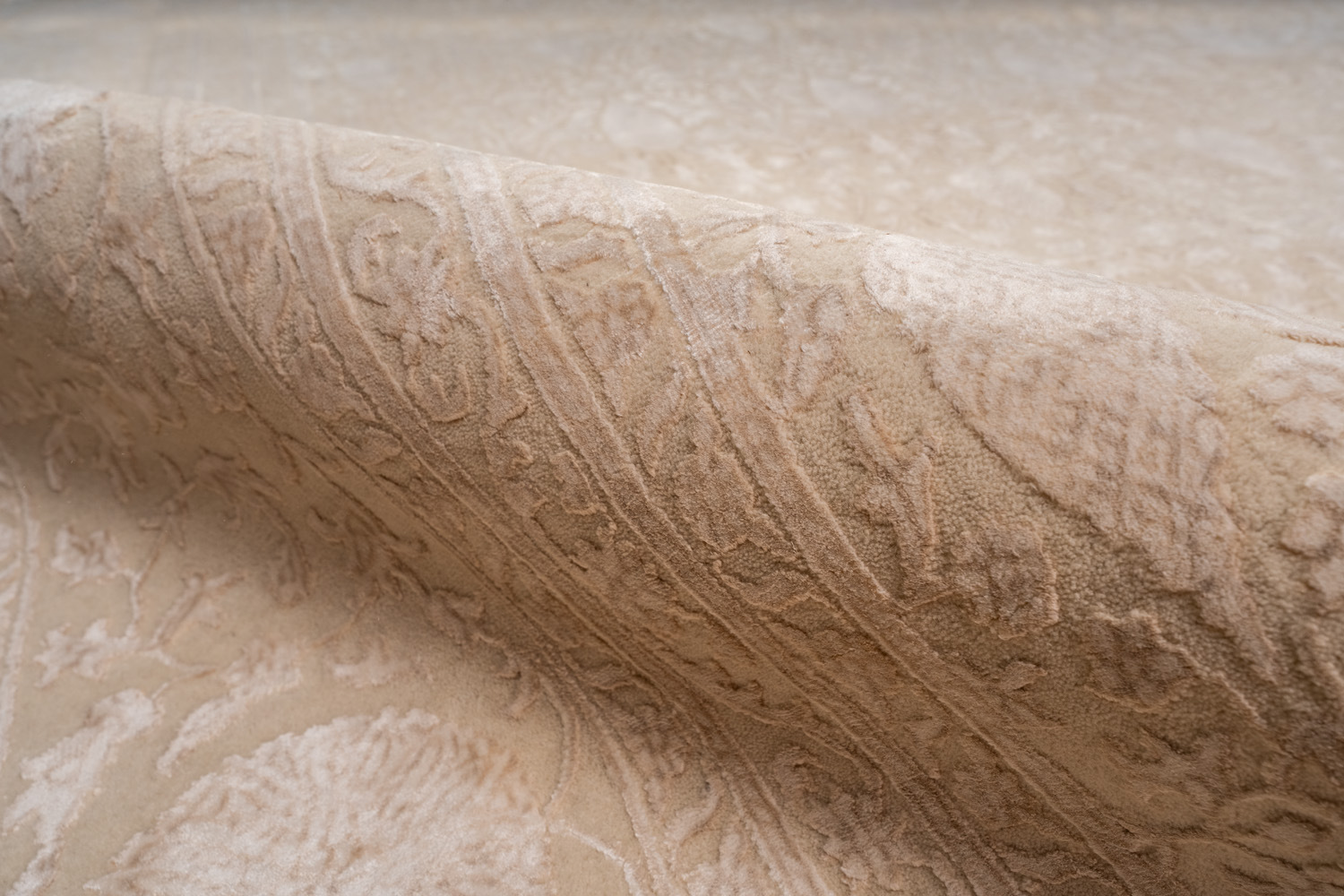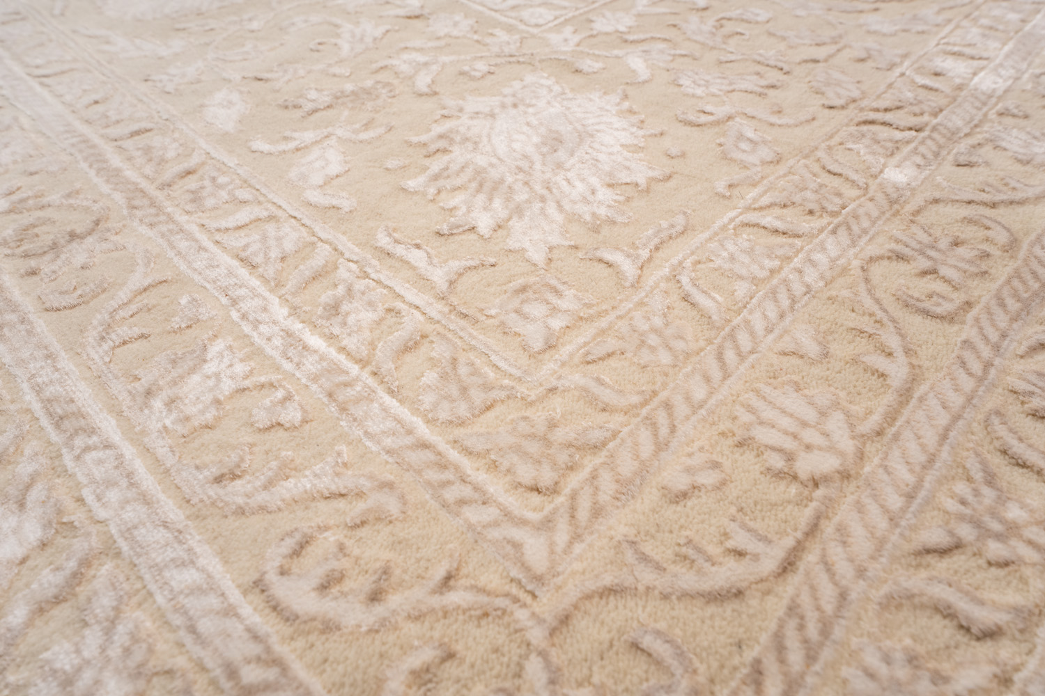 Каждый ковер в этой коллекции соткан вручную из шерсти и арт шёлка опытными индийскими мастерами.