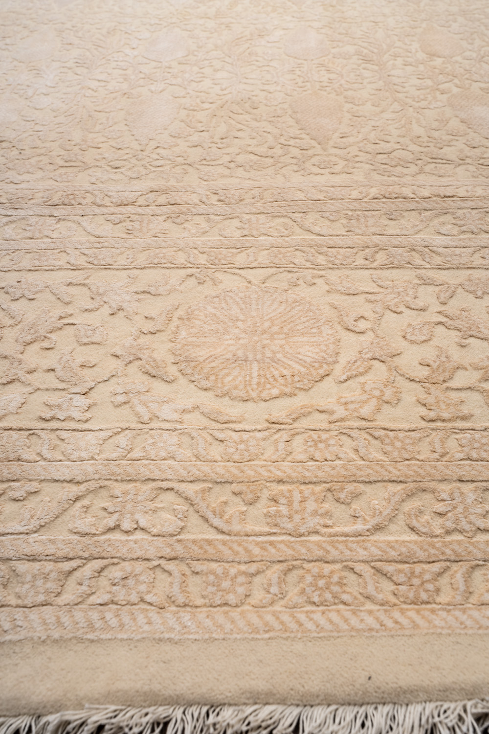 Более пяти веков назад в городе Агра зародилась знаменитая индийская школа ковроткачества, прославившаяся не меньше, чем расположенный здесь же Тадж-Махал. Мощное персидское влияние, помноженное на местный колорит, привело к появлению оригинальных орнаментов с богатыми растительными узорами — причудливым цветам, ветвям и листьям, разбросанным по всему полю ковра.