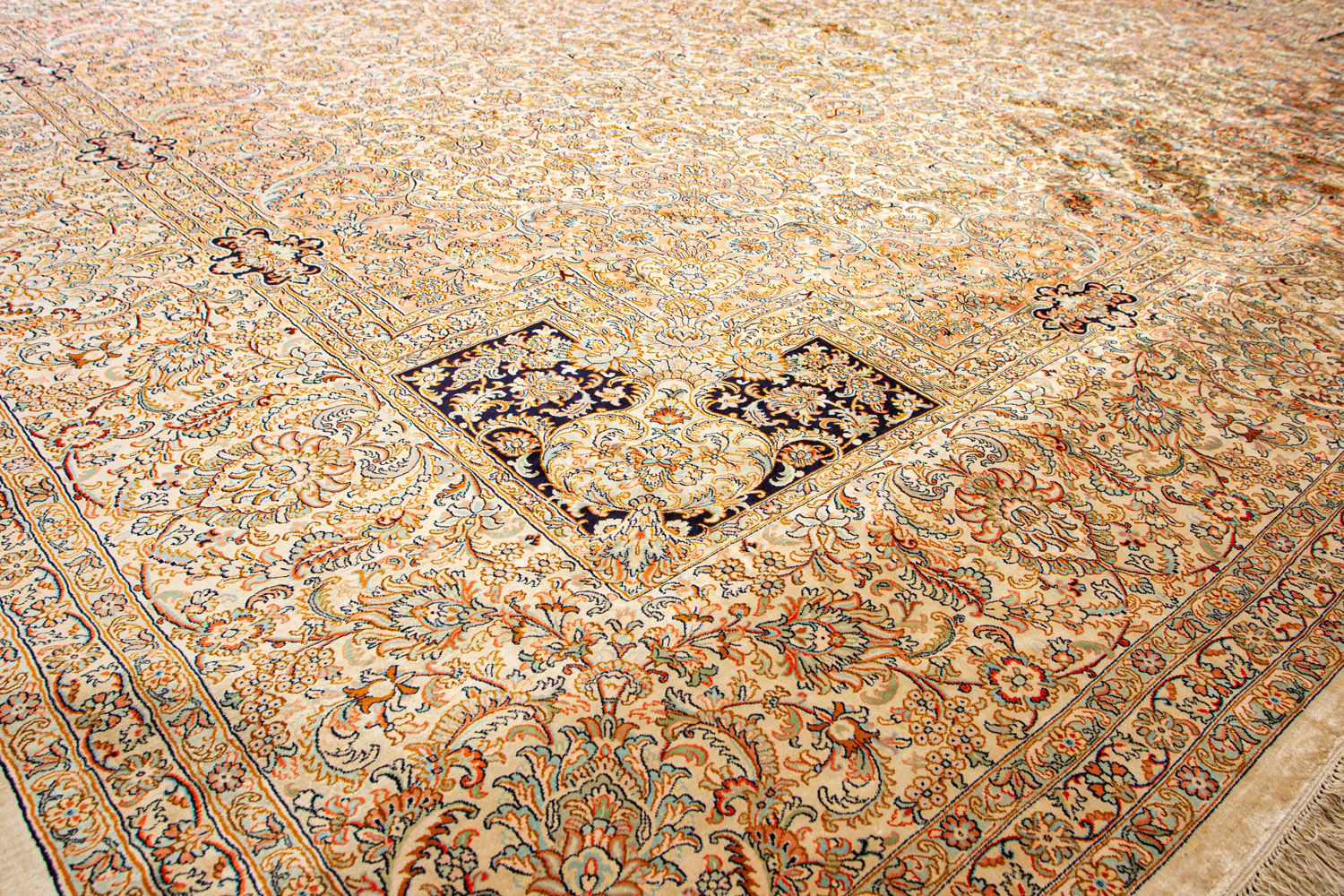 Ковры из коллекции Кашмир ткутся по традиционной технологии из нежнейшего кашмирского шелка. Лучшие произведения индийских мастеров отличает высокая узелковая плотность, прочность и яркость цветов.