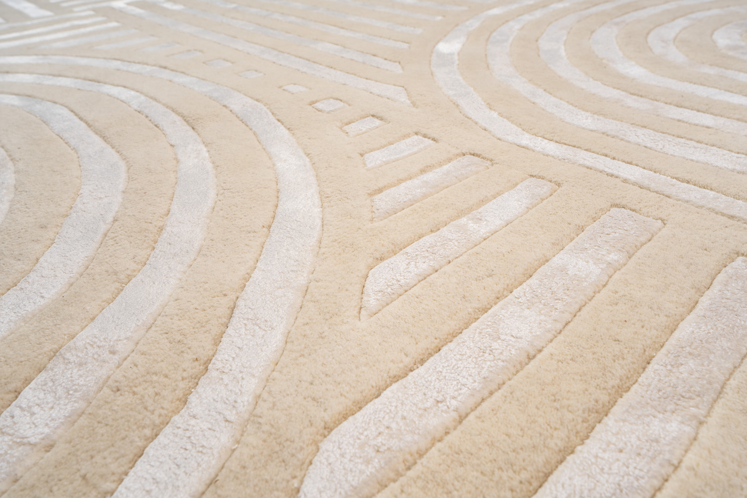 Ковры изготовлены методом ручного тафтинга. Эта технология позволяет создавать объемный рисунок и мягкие переходы цвета. Почитатели коллекции Shine ценят богатую фактуру ковров в сочетании с натуральными материалами и превосходной техникой в исполнении индийских мастеров.