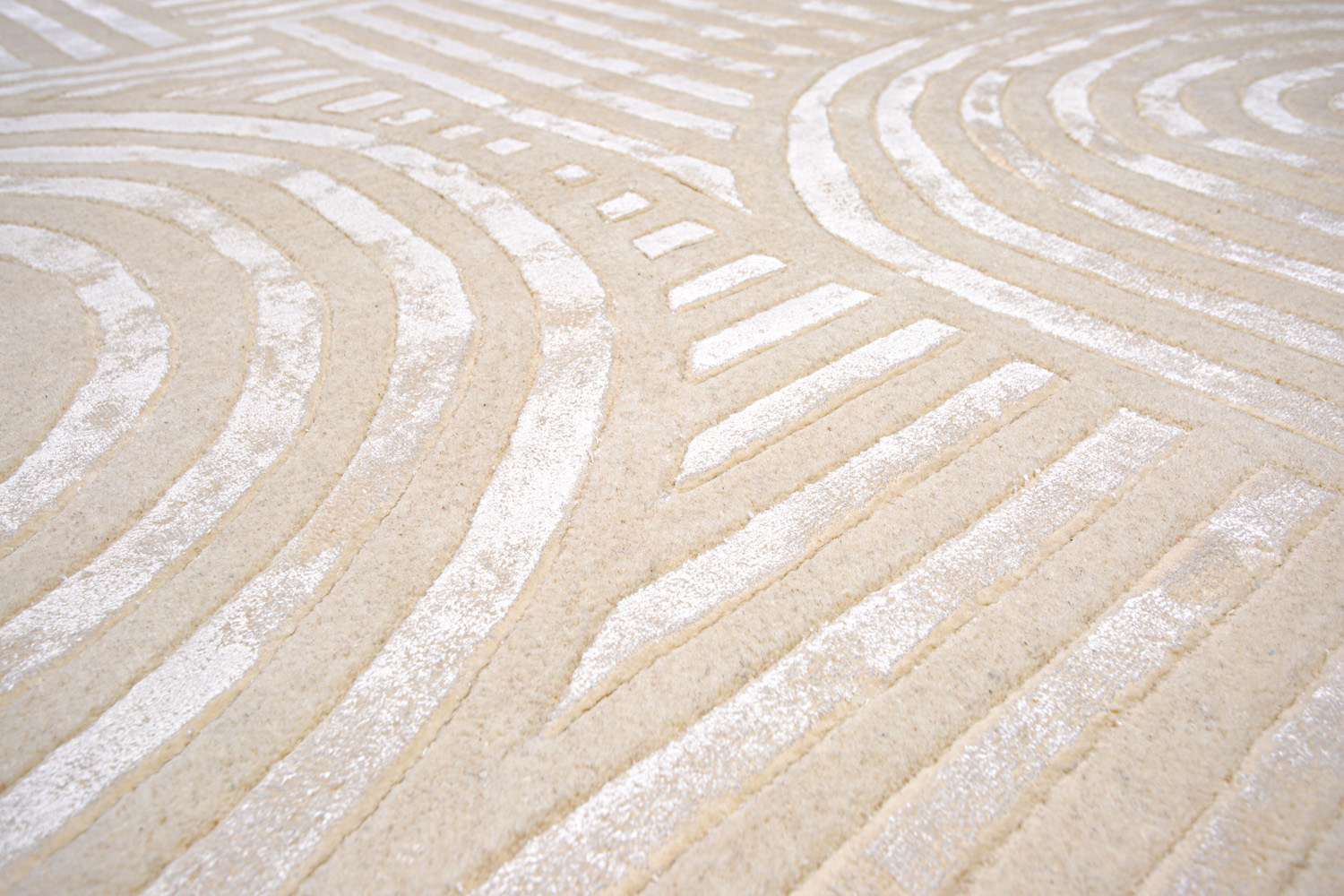 Ковры изготовлены методом ручного тафтинга. Эта технология позволяет создавать объемный рисунок и мягкие переходы цвета. Почитатели коллекции Shine ценят богатую фактуру ковров в сочетании с натуральными материалами и превосходной техникой в исполнении индийских мастеров.