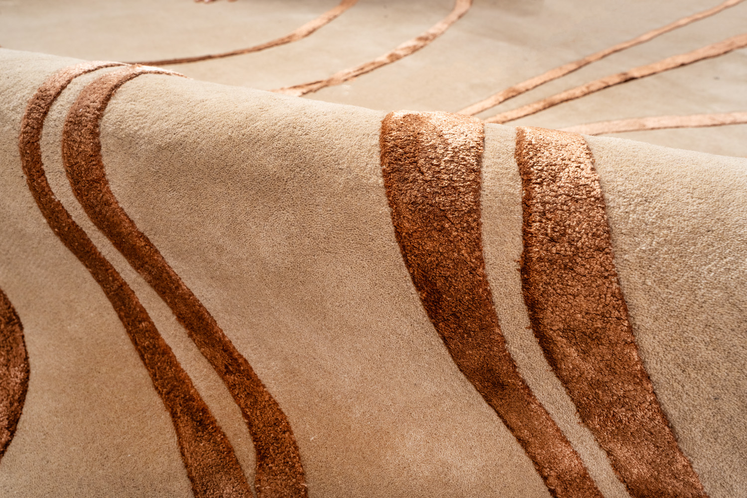 Ковры изготовлены методом ручного тафтинга. Эта технология позволяет создавать объемный рисунок и мягкие переходы цвета. Почитатели коллекции Shine ценят богатую фактуру ковров в сочетании с натуральными материалами и превосходной техникой в исполнении индийских мастеров.