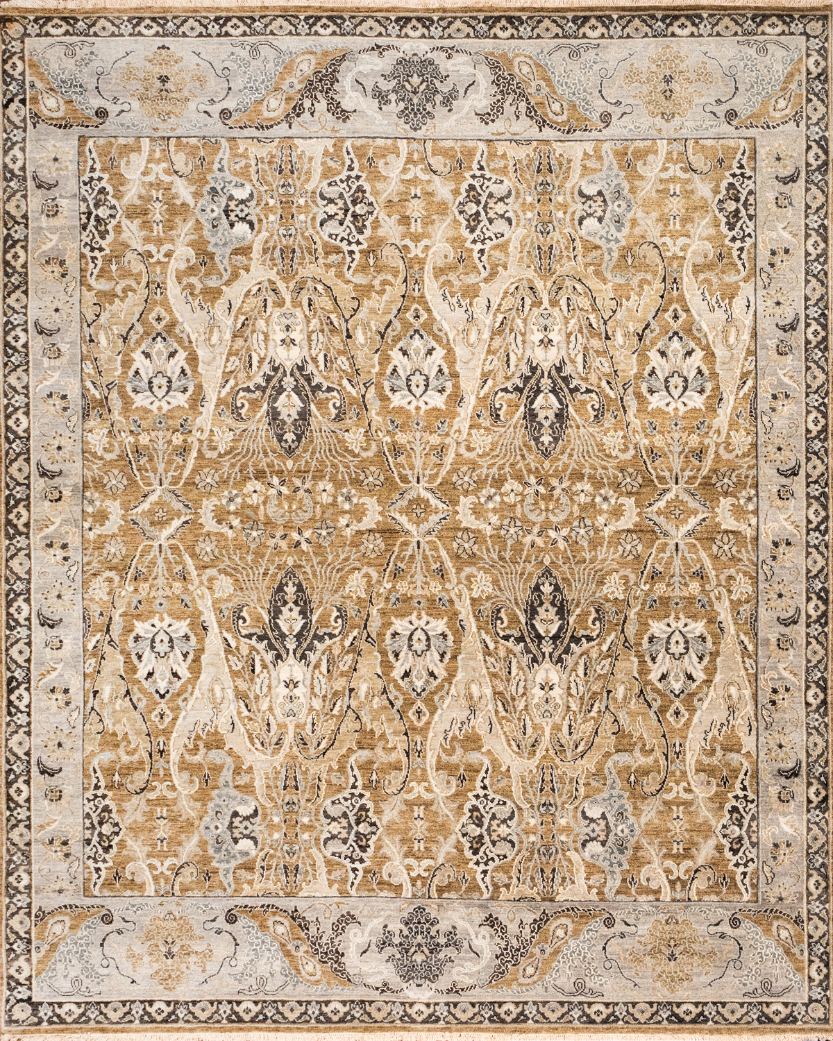 Каждый ковер в этой коллекции соткан вручную из шерсти и арт шёлка опытными индийскими мастерами.