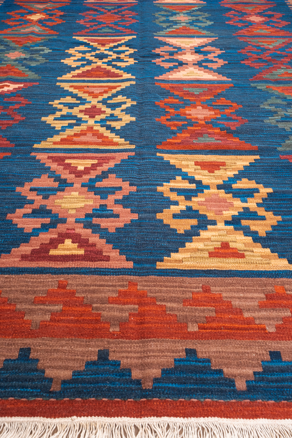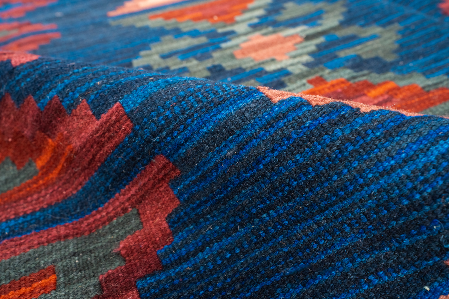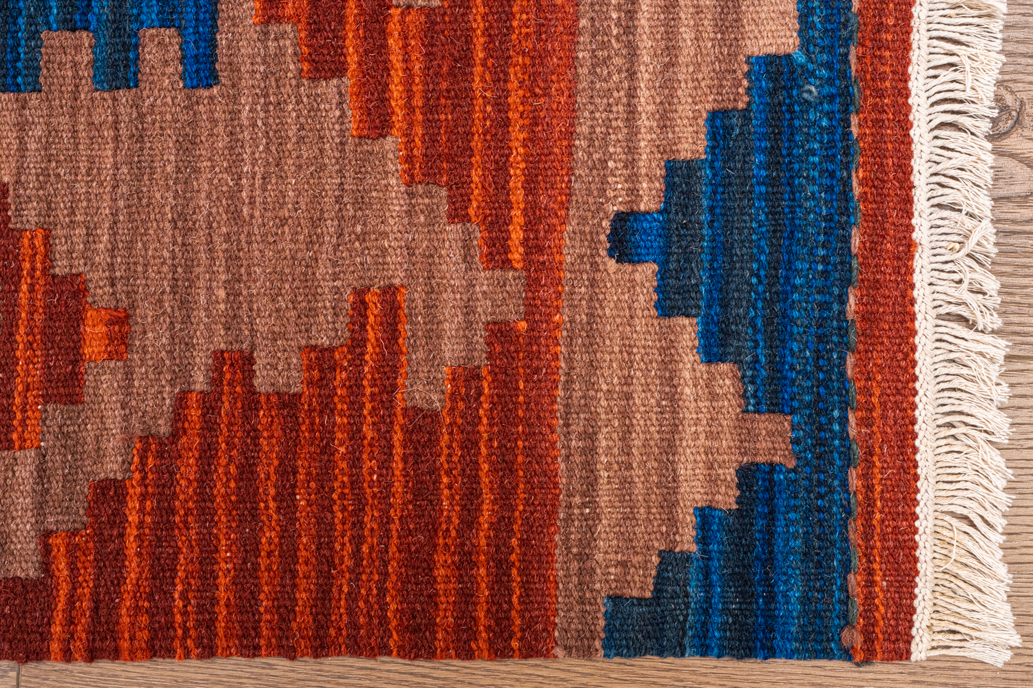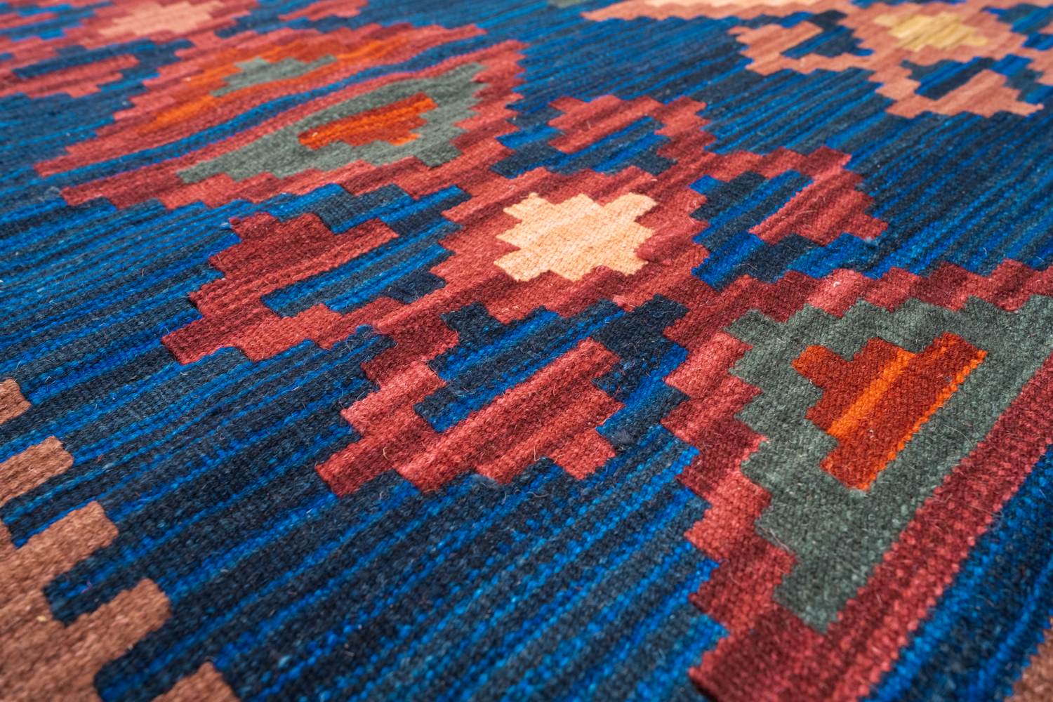 Узор ковров из коллекции Килим создаётся взаимодействием нитей утока и нитей основы, благодаря чему получается геометрический узор.