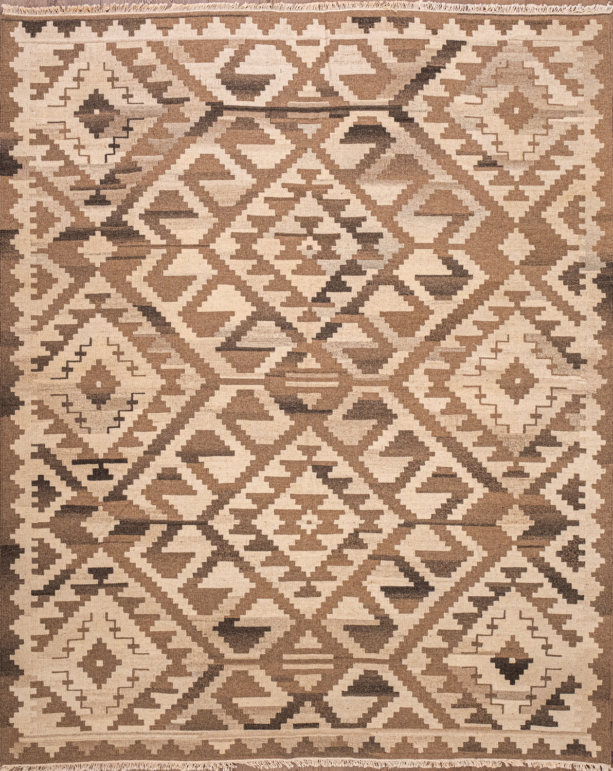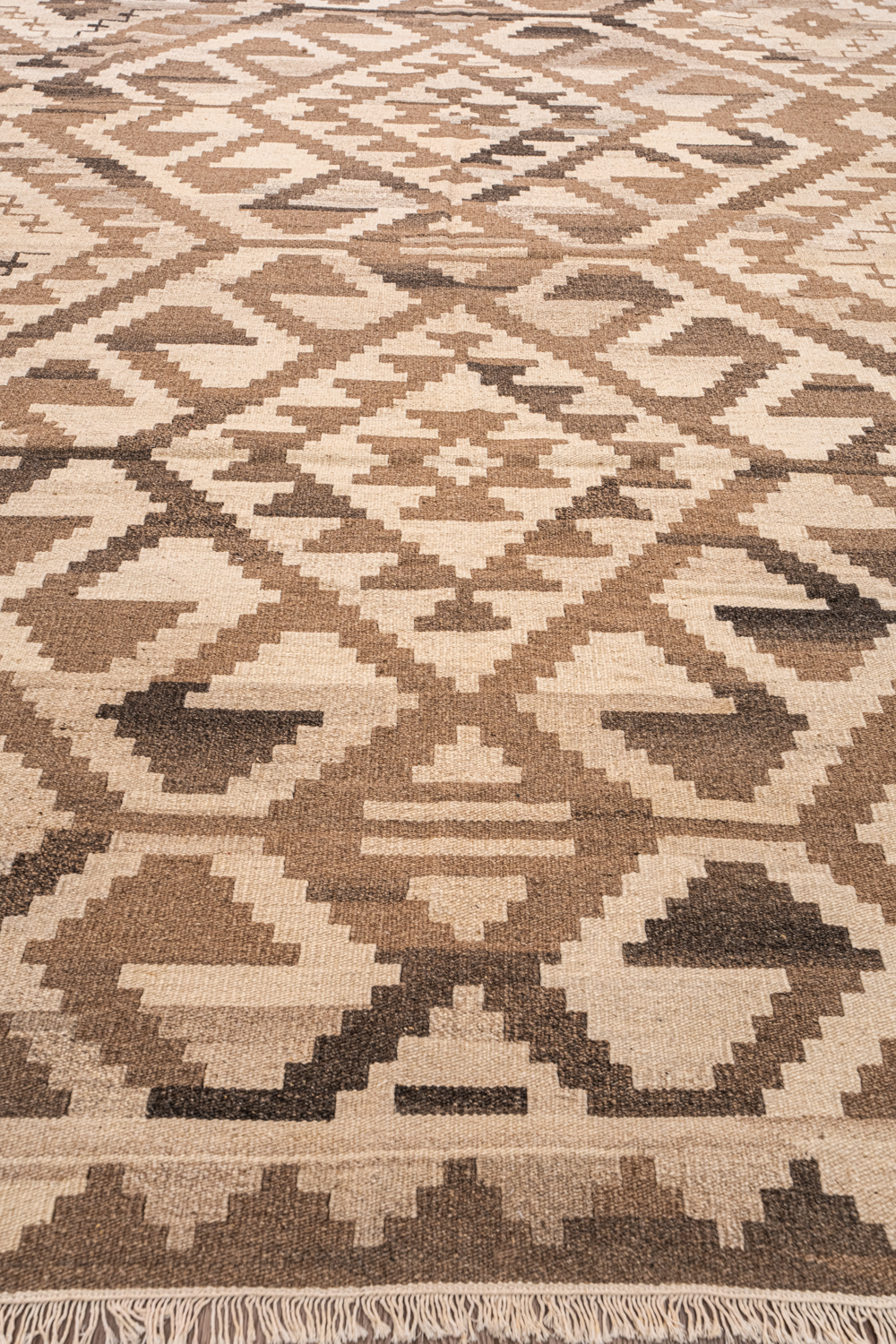 Узор ковров из коллекции Килим создаётся взаимодействием нитей утока и нитей основы, благодаря чему получается геометрический узор.
