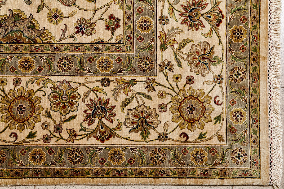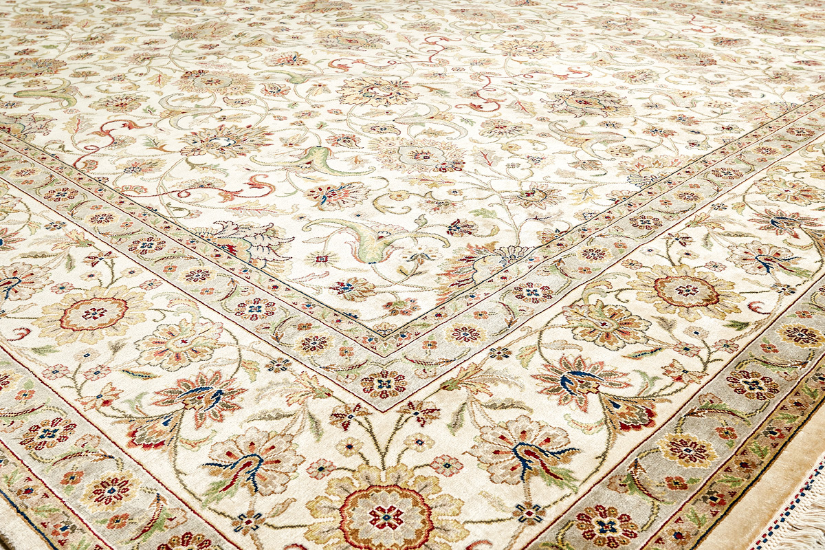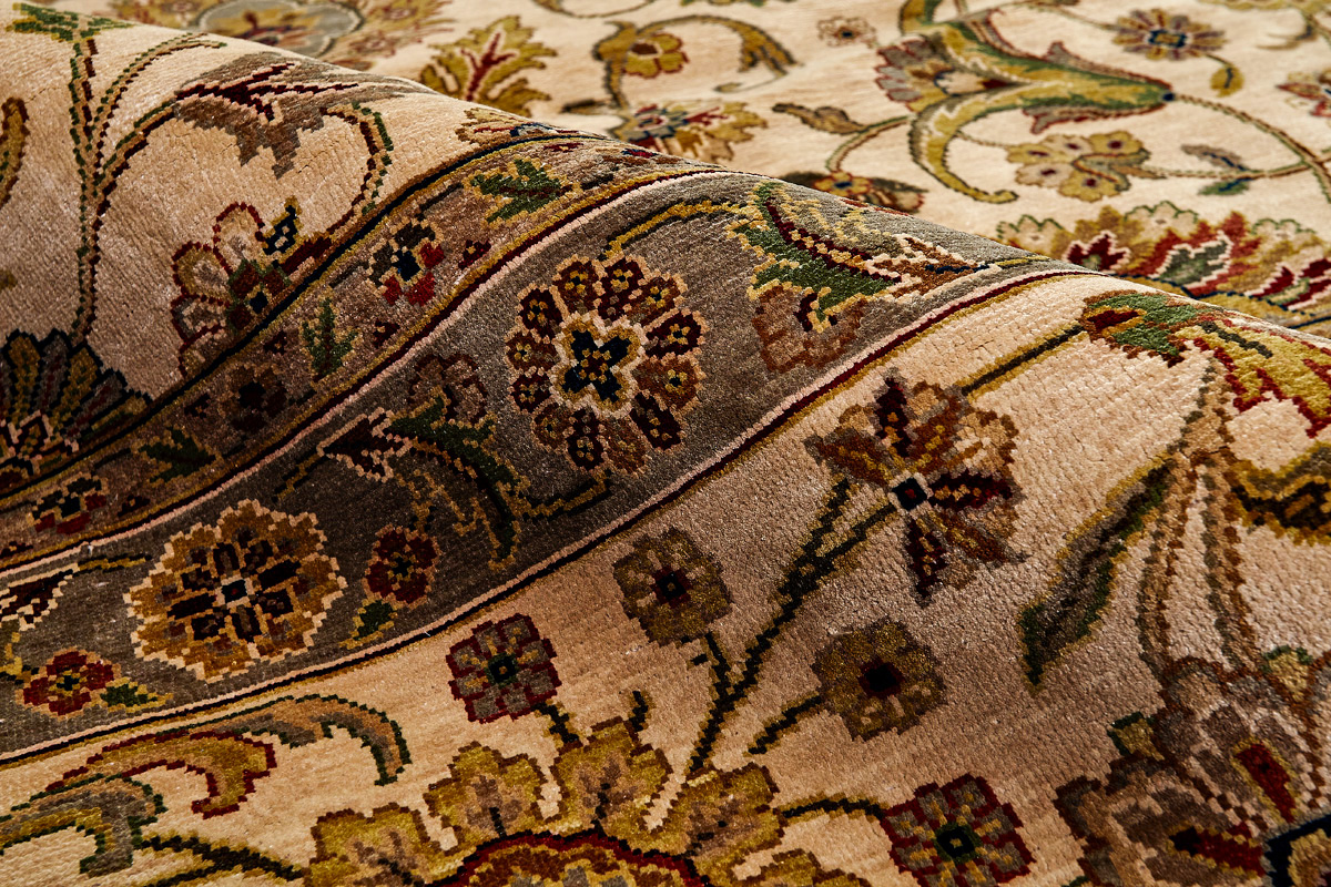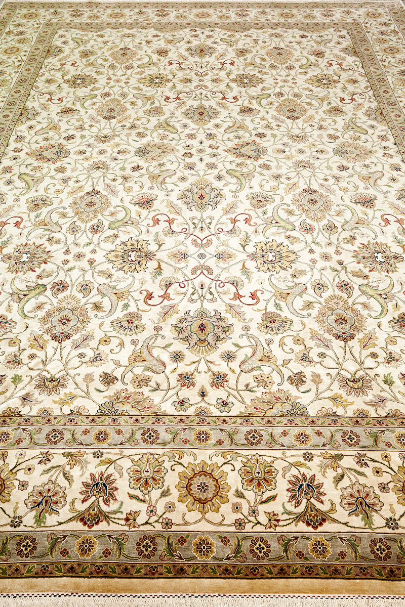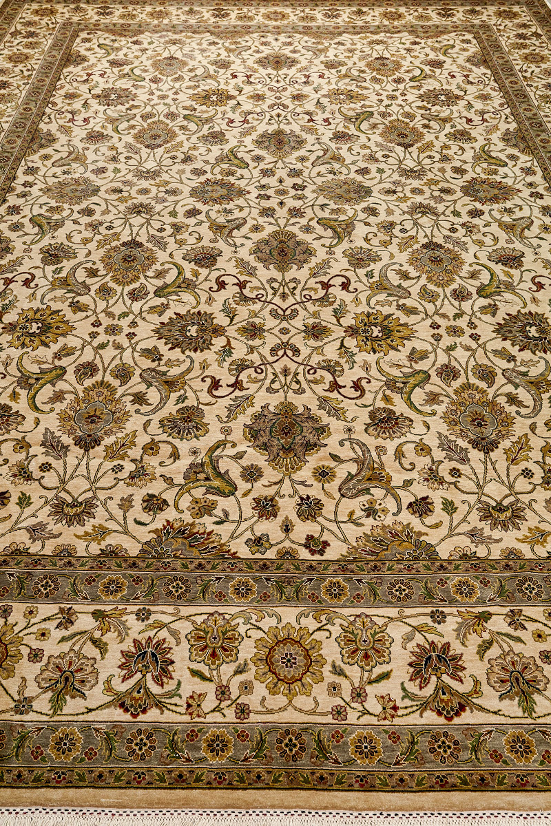 Более пяти веков назад в городе Агра зародилась знаменитая индийская школа ковроткачества, прославившаяся не меньше, чем расположенный здесь же Тадж-Махал. Мощное персидское влияние, помноженное на местный колорит, привело к появлению оригинальных орнаментов с богатыми растительными узорами — причудливым цветам, ветвям и листьям, разбросанным по всему полю ковра.