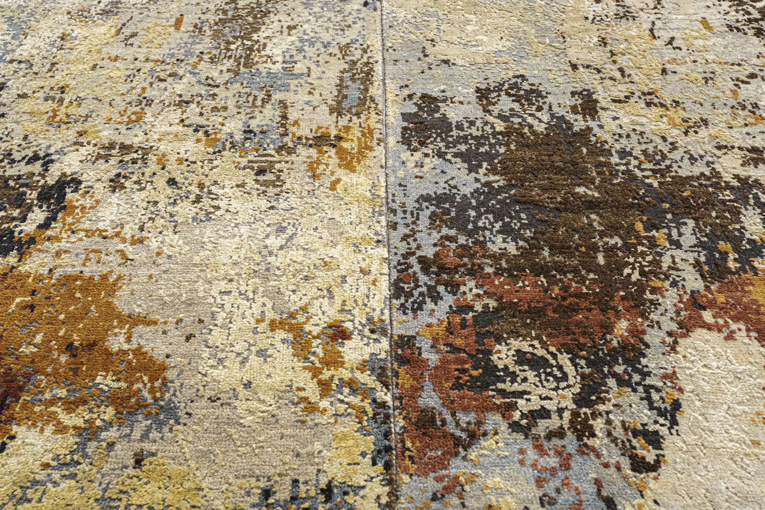 Дизайн ковров напоминает современные полотна художников-абстракционистов и производит столь же яркое и незабываемое впечатление в интерьере. Живописный эффект и необычная фактура зависят от выбора материала: натуральной шерсти, шёлка и от их сочетаний друг с другом. Ковры ткутся вручную в лучших мастерских Индии и Пакистана.