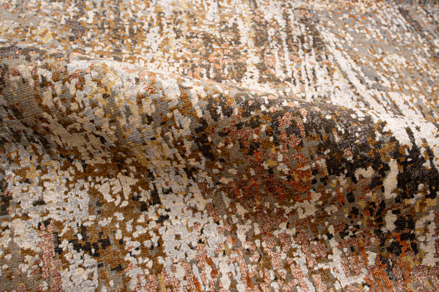 Дизайн ковров напоминает современные полотна художников-абстракционистов и производит столь же яркое и незабываемое впечатление в интерьере. Живописный эффект и необычная фактура зависят от выбора материала: натуральной шерсти, шёлка и от их сочетаний друг с другом. Ковры ткутся вручную в лучших мастерских Индии и Пакистана.