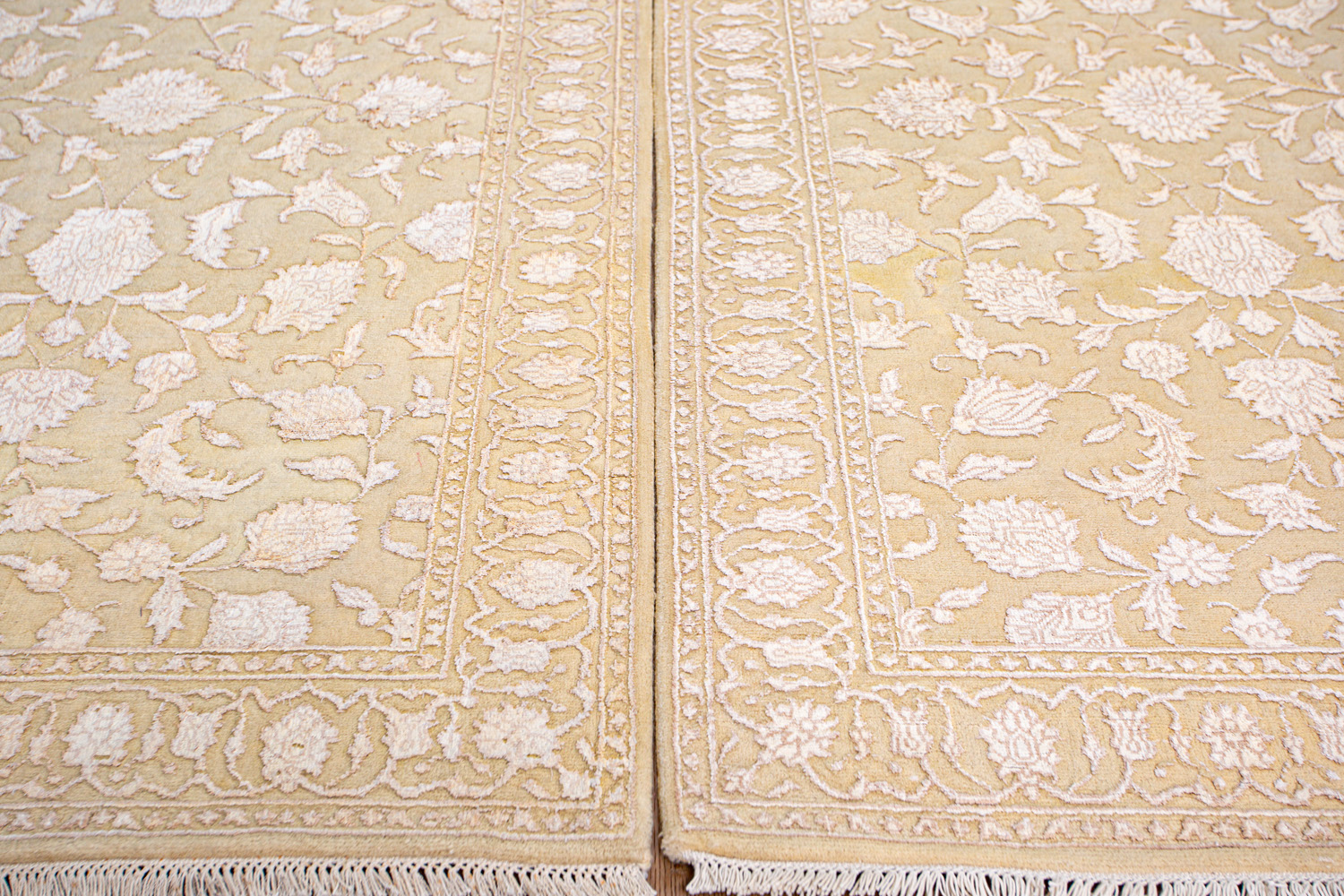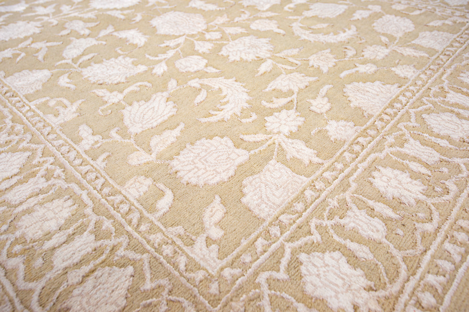 Каждый ковер в этой коллекции соткан вручную из шерсти и арт шёлка опытными индийскими мастерами.