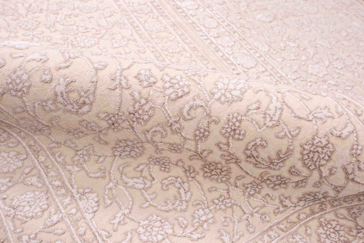 Каждый ковер в этой коллекции соткан вручную из шерсти и арт шёлка опытными индийскими мастерами.